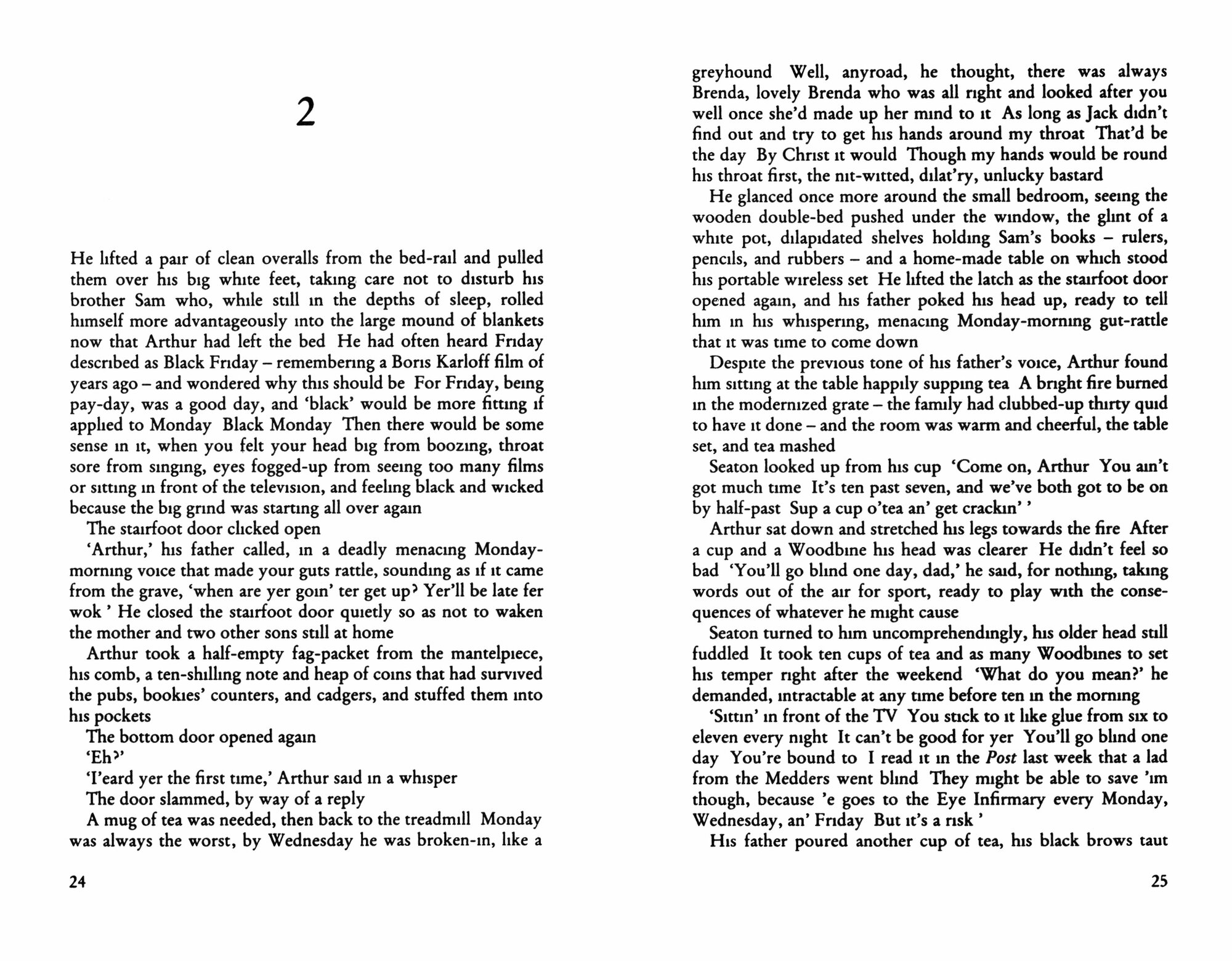 Working all day at a lathe leaves Arthur Seaton with energy to spare in the evenings. A hard-drinking, hard-fighting hooligan, he knows what he wants, and he's sharp enough to get it.