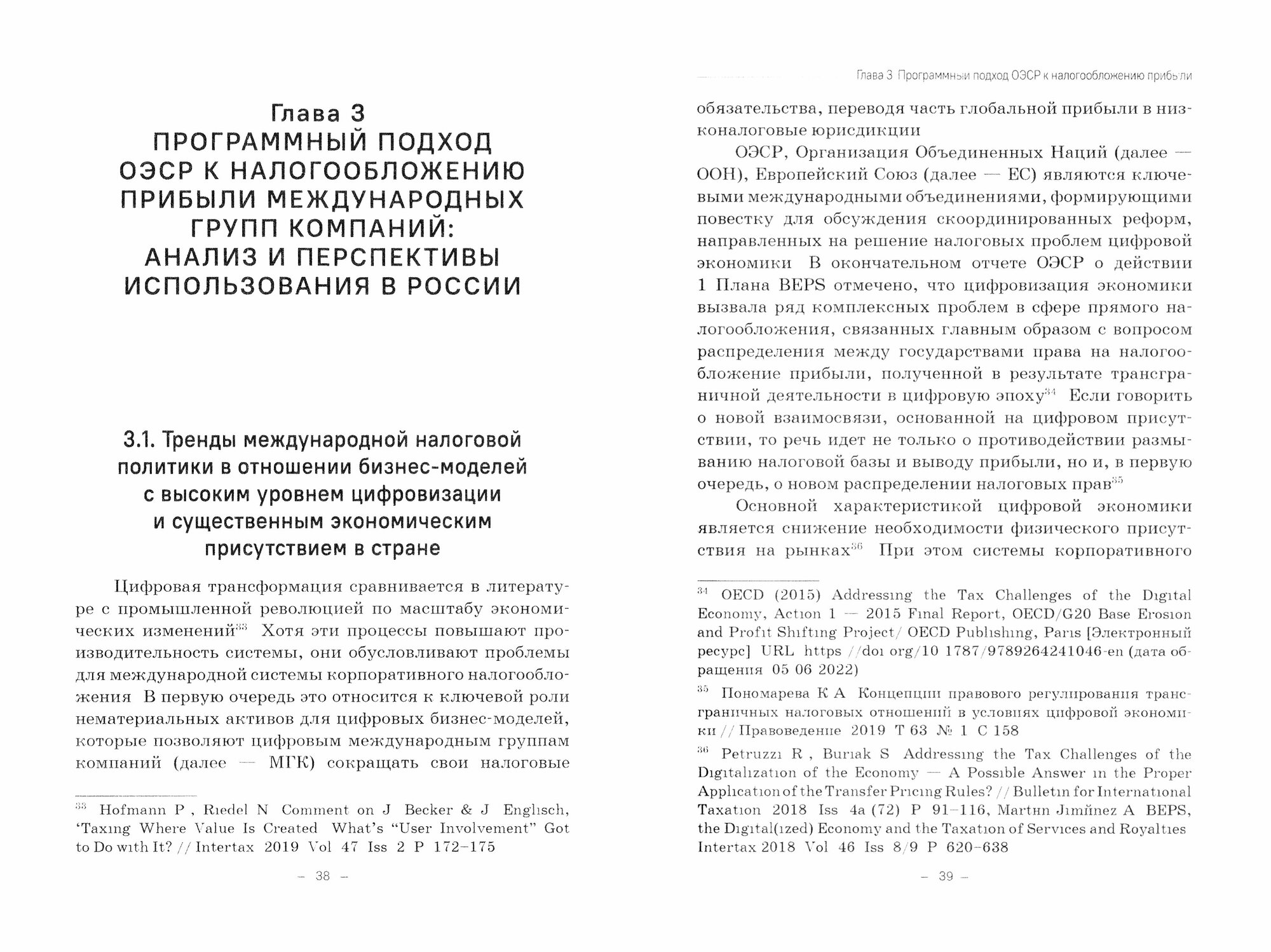 В монографии рассмотрены предложения международных организаций по вопросам реформирования правил налогообложения цифровых бизнес-моделей и методологии налогообложения прибыли цифровых компаний. Отмечено, что необходимость анализа и оценки реформирования правил налогообложения в условиях цифровизации актуальна для соблюдения фискальных интересов государства, что особенно важно в контексте фрагментации международного пространства. Предложены варианты развития концепции налогообложения цифровых компаний в отдельных государствах с учетом неопределенности регулирования на международном уровне.
