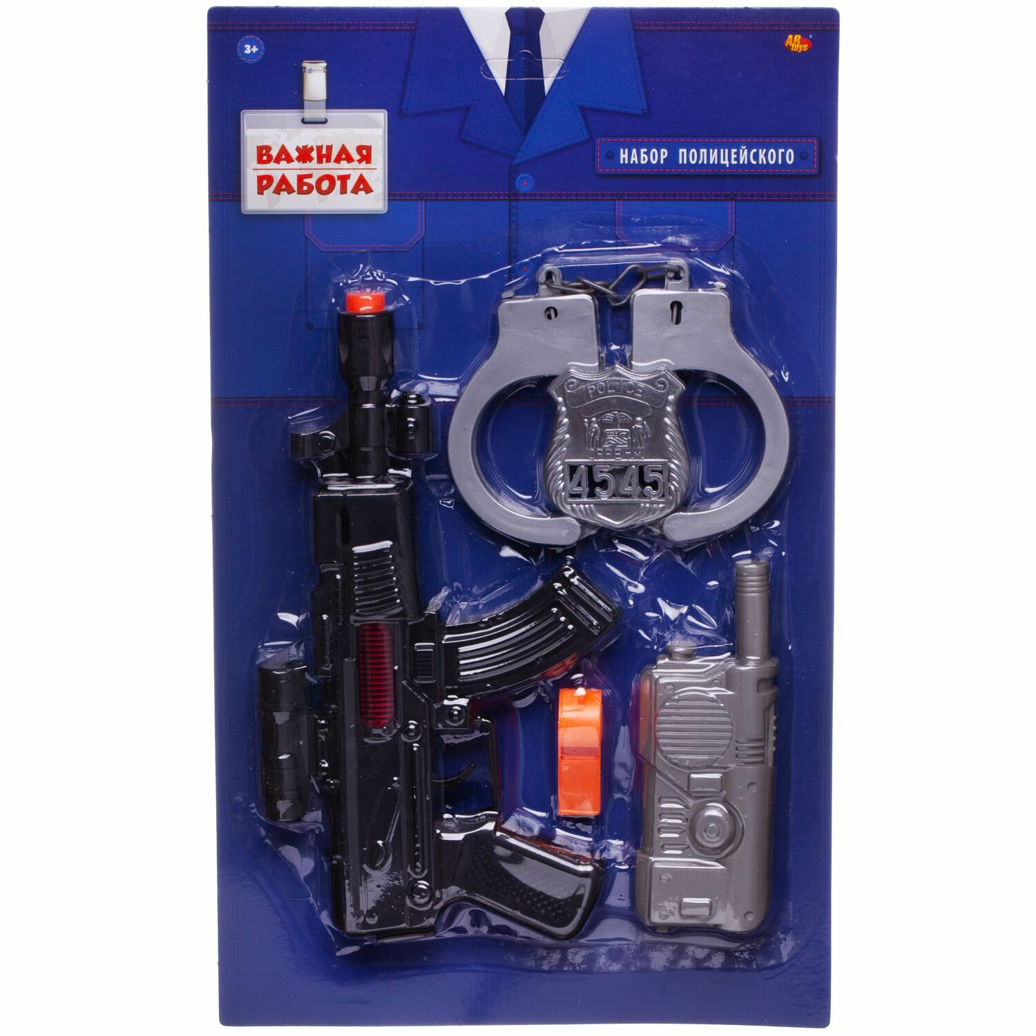 Комплектность: автомат - 1 шт., рация (муляж) - 1 шт., наручники - 1 шт., жетон - 1 шт., свисток - 1 шт.