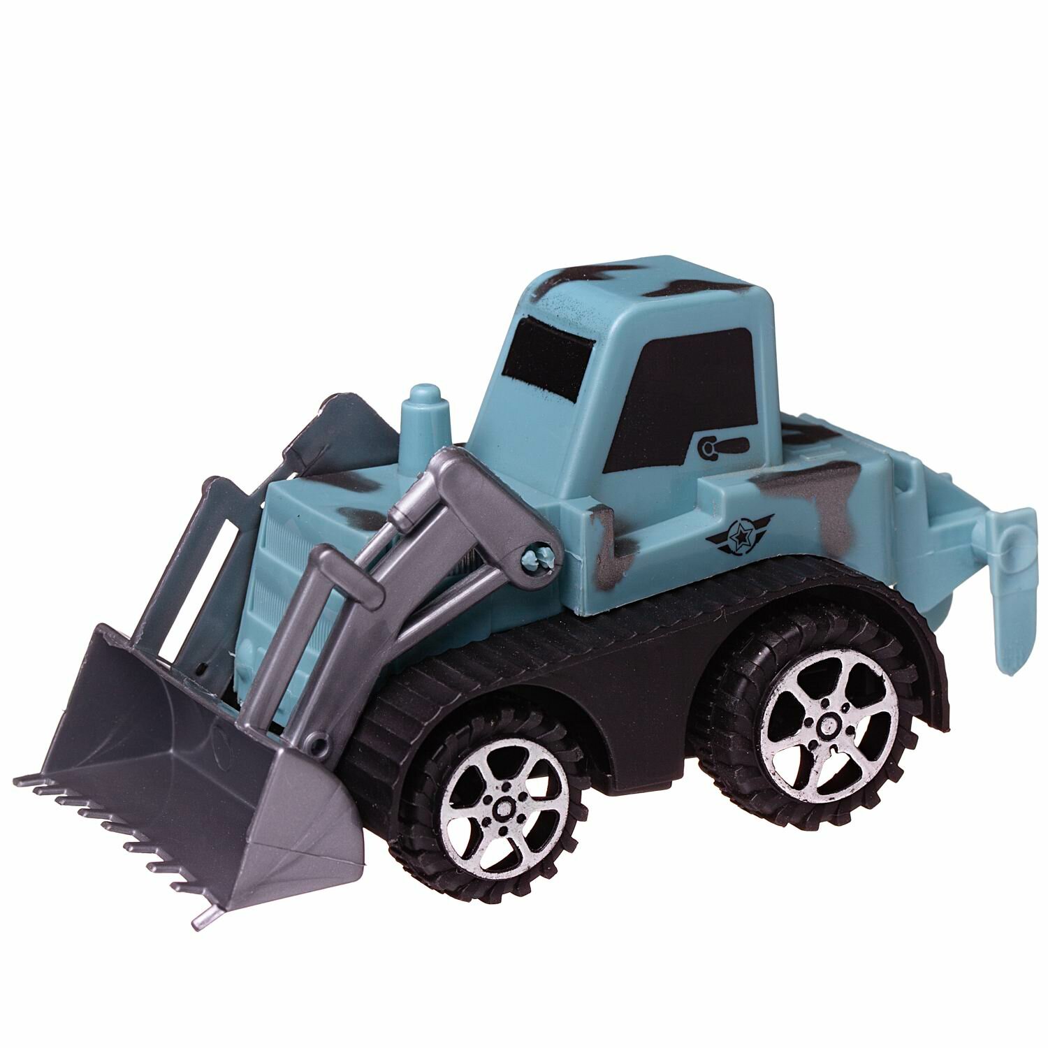 Размер трактора: 9,5х6х6,5 см. Длина с опущенным ковшом 12 см.