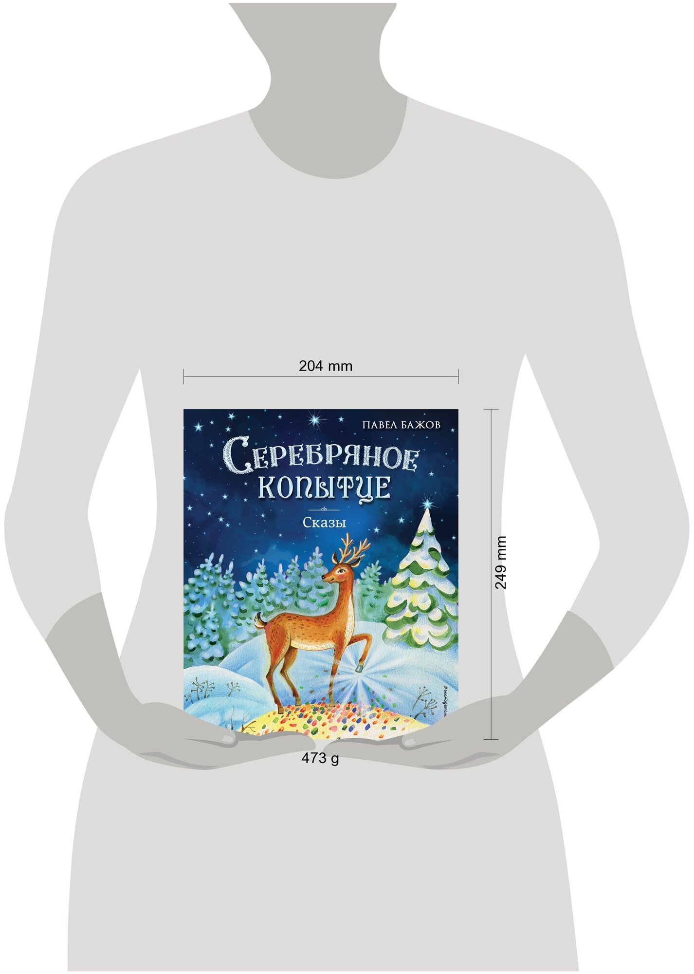 Книга "Серебряное копытце. Сказы" составляет мини-серию с изданием "Медной горы Хозяйка". Подарочное издание. Твёрдый переплёт с тиснением и частичным лаком. Белая бумага; крупный, удобочитаемый шрифт.