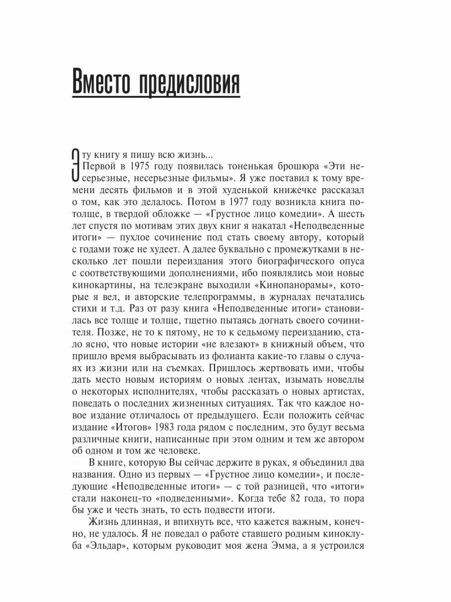 Книга "Грустное лицо комедии, или Наконец подведенные итоги" раскроет вам секреты души и творчества большого мастера.