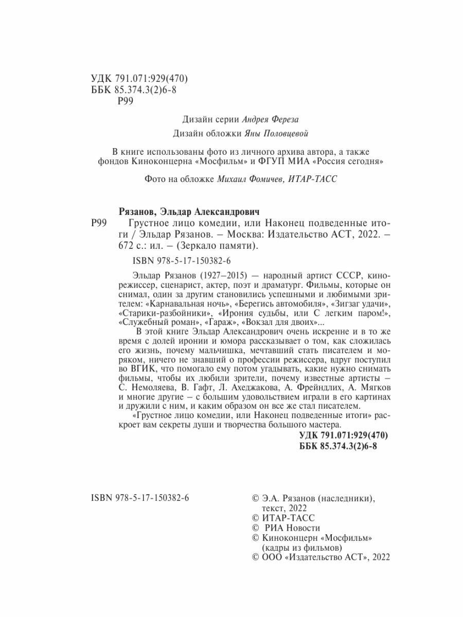 Грустное лицо комедии или Наконец подведенные итоги (Эльдар Александрович Рязанов); АСТ, 2023