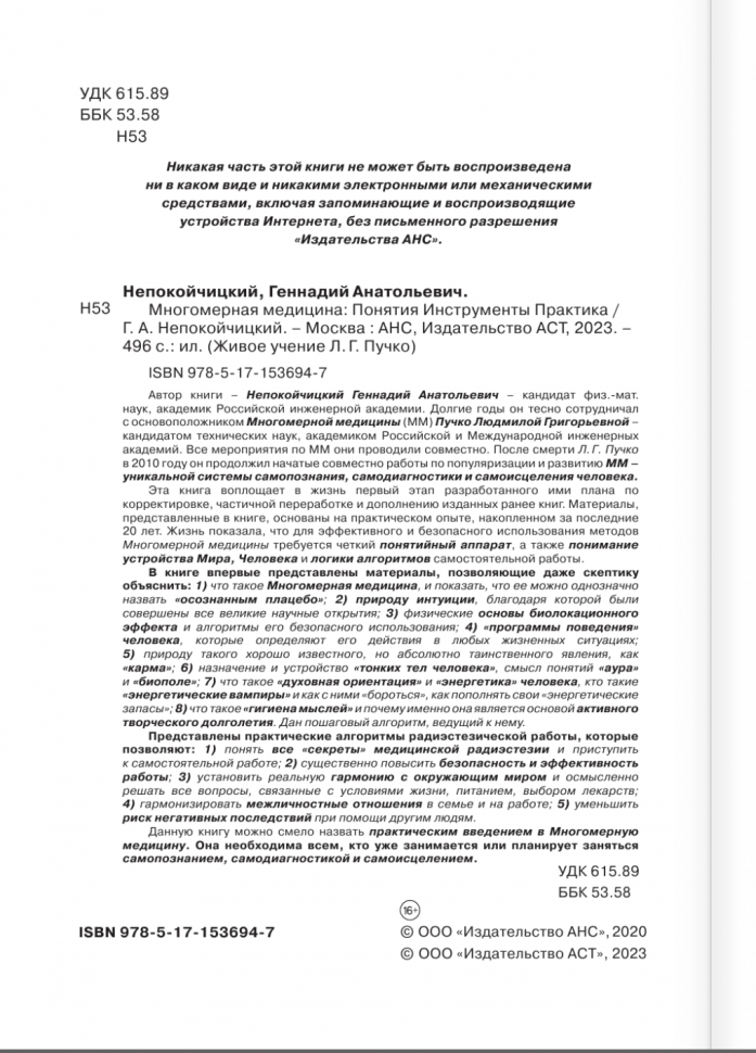 Многомерная медицина. Понятия. Инструменты. Практика. (Непокойчицкий Геннадий Анатольевич); ИЗДАТЕЛЬСТВО "АСТ", 2023