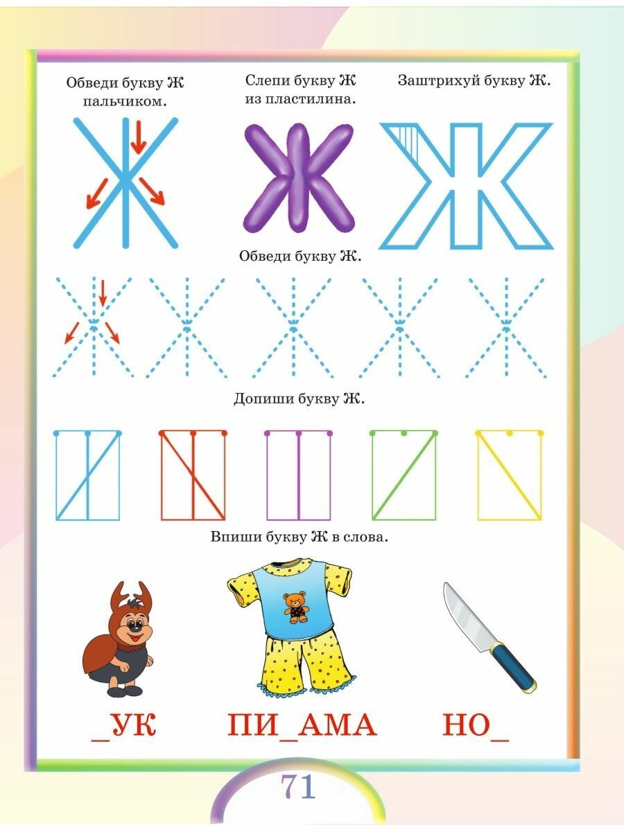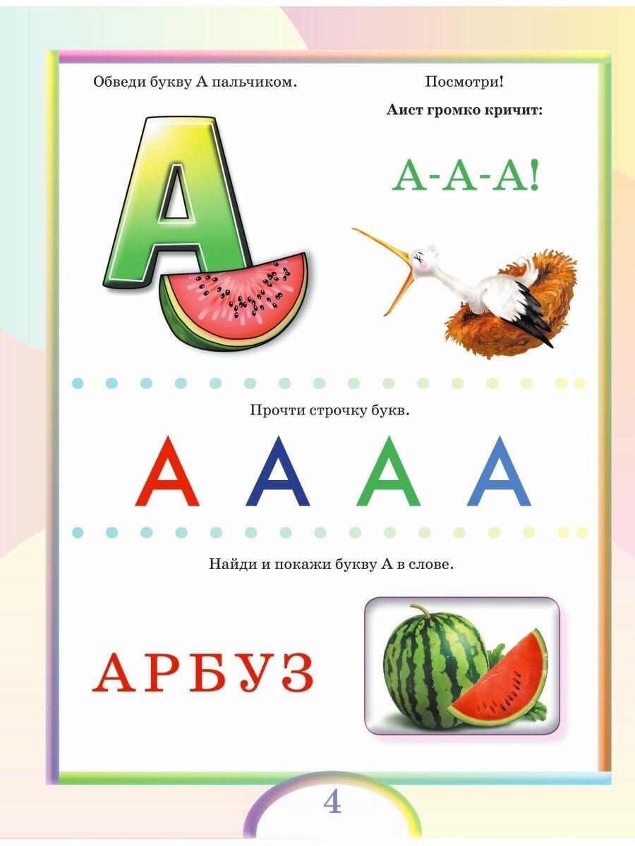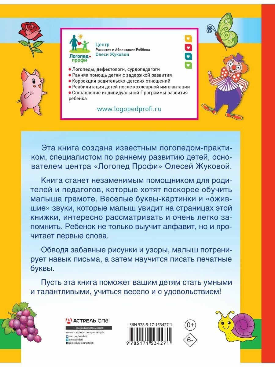 Олеся Жукова - хороший автор детских развивашек! Все ее книги и пособия хорошо продуманы и облегчают родителям и воспитателям жизнь) Книга яркая, что сразу же привлечет внимание ребенка, картинки динамичные, хорошо прорисованные, все к месту. Данное пособие поможет малышам быстрее освоить азбуку и параллельно научиться выводить буквы, так как в этой чудесной книжке можно еще и писать! Рекомендую.