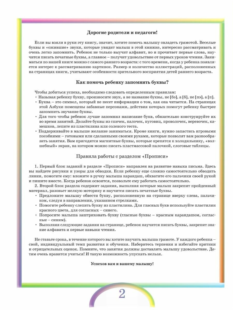 Эта книга - незаменимый помощник для родителей и педагогов, которые хотят поскорее обучить малыша грамоте. Разглядывая веселые яркие картинки и выполняя увлекательные задания, ребенок не только выучит алфавит, но и прочитает первые слова, научится писать печатные буквы, а главное - получит удовольствие от занятий.