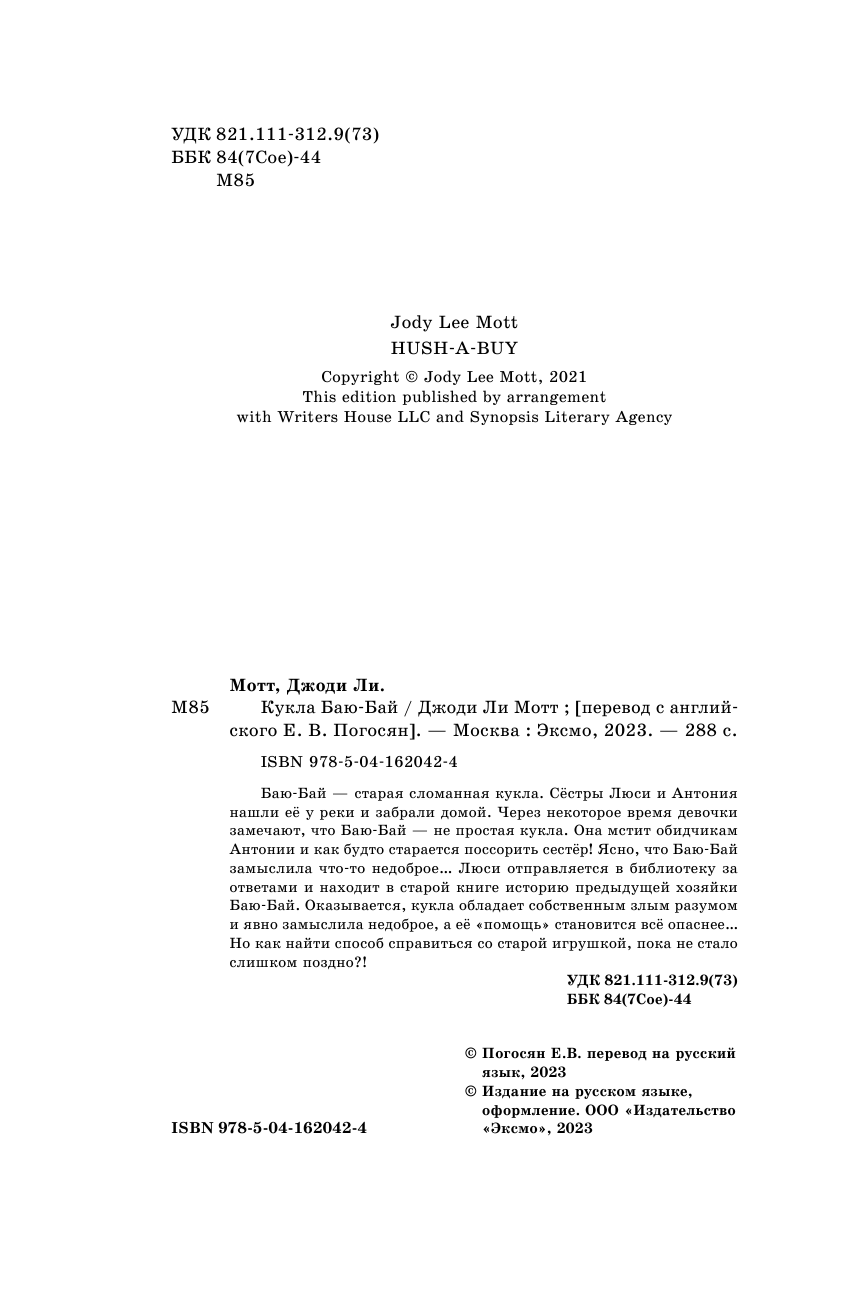 Сервис сравнения цен СкидкаГИД предлагает сравнить цены на товар «Книга: Кукла Баю-Бай (Мотт Джоди Ли); ООО "Издательство "Эксмо", 2022»