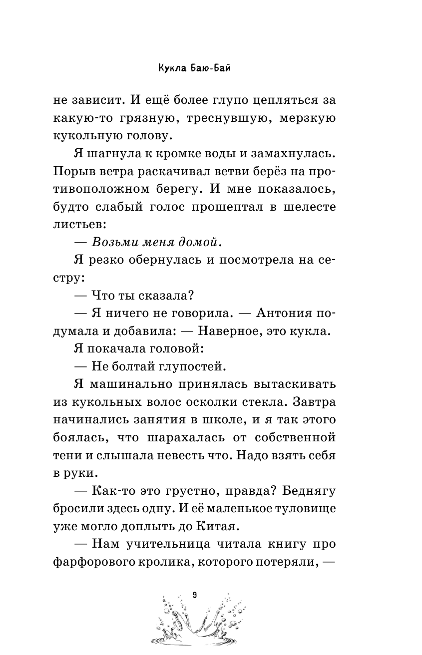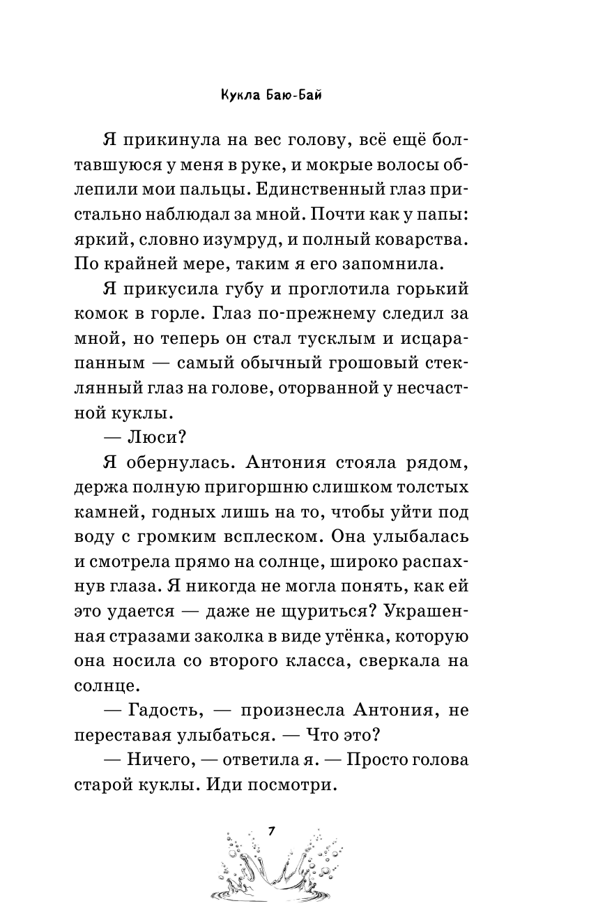 Книга не отпускает от первой до последней страницы. Её интересно читать не только подросткам, но и взрослым. Очень интересный сюжет о двух девочках-сёстрах и найденной ими кукле, а точнее голове куклы, которая с каждым поступком мести обидчиков девочек собирает все свои части тела.