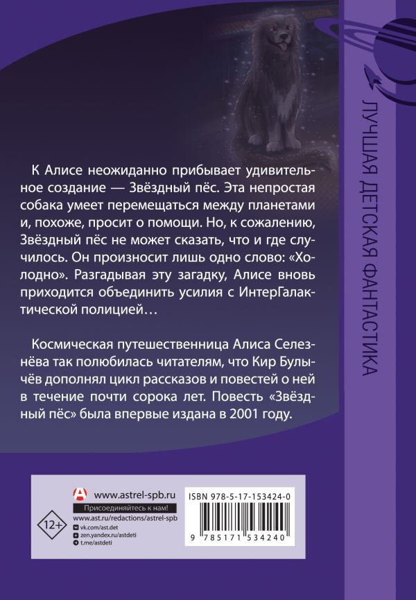 На сегодняшний день товар «Книга: Звездный пес (Лучшая детская фантастика); АСТ, Малыш, 2022» можно купить с кешбеком в 3 магазинах: Читай-город, book24, Onliner BY