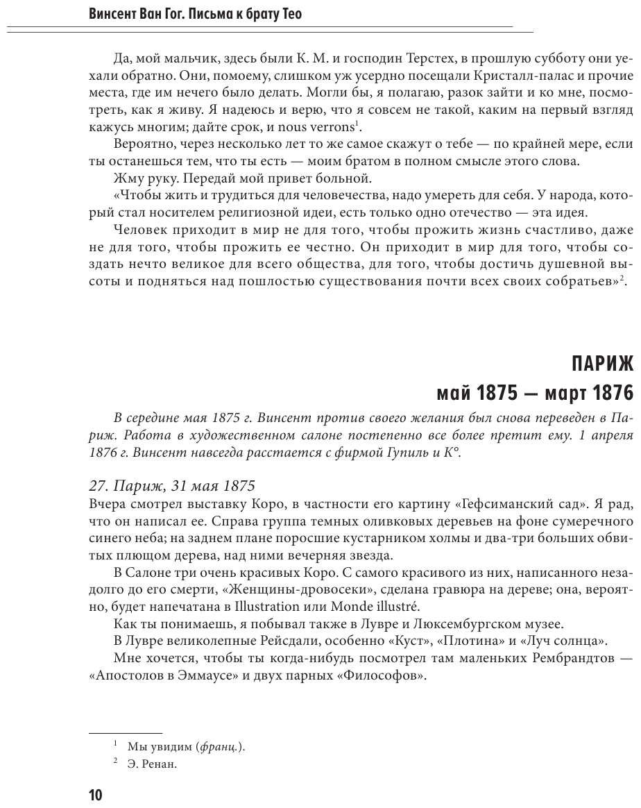 Я была покорена этим сборником писем. Тут еще отмечается, что он составляет все письма, кикие художник только писал к своему брату Тео. Афоризмы его меня покоряют. Он мыслит как добродушный и очень глубокий человек. Настоятельно рекомендую даже тем, кто не интересуется эпистолярным жанром.