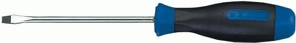 Назначение: Инструмент предназначен для завинчивания/отвинчивания крепежных элементов вручную, имеющих плоский внутренний рабочий профиль. Область применения: На станциях технического обслуживания автомобилей (стоа), в автосервисах и автомастерских, для домашнего использования или профессиональных ремонтно-монтажных операций. Особенности: • Прочный стальной стержень. • Способна выдерживать высокие нагрузки. • Оксидированная головка жала направлена на улучшение сцепления с крепежной деталью. • Устойчива к разрушающему воздействию масел и бензина. • Удобная в обхвате двухкомпонентная ручка. Технические характеристики:Ширина шлица, мм 5,5 Длина стержня, мм 125 Материал стержня CrV Вес, кг 0,083