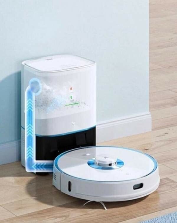 Подъехав к зарядной базе, устройство сбрасывает весь собранный мусор из пылесборника в мешок. Объем мешка в док-станции составляет 3 литра, чего достаточно до 30 дней уборки.