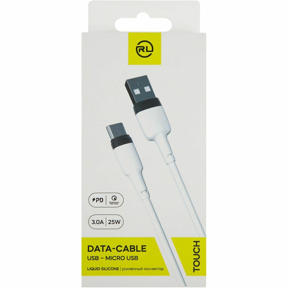 Дата-Кабель Red Line Touch USB - Micro USB liquid silicone усиленный коннектор PD до 3А белый (УТ000030876)