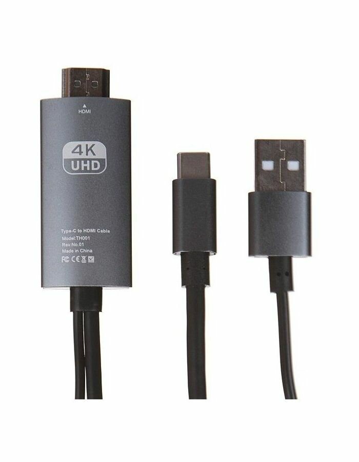 Кабель позволяет подключить ноутбук или ПК с разъемом Type- C к монитору с разъемом HDMI. Поддерживает передачу картинки в разрешении 4K. Звук синхронизируется и передается по дополнительному аудио кабелю. Разъем USB предназначен для подачи дополнительного питания 5 В, если подключаемому устройству недостаточно питания от HDMI. Кабель не подходит для устройств с USB Type- C, где данный разъём выполняет только роль USB порта.