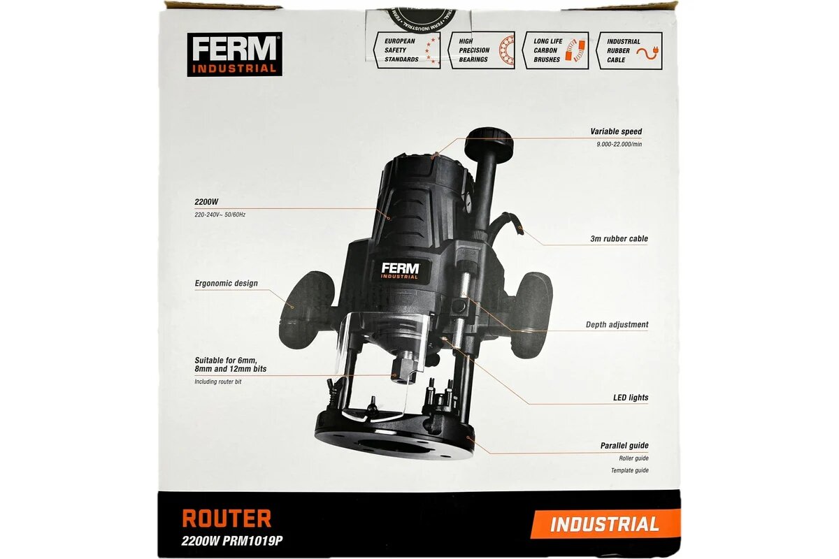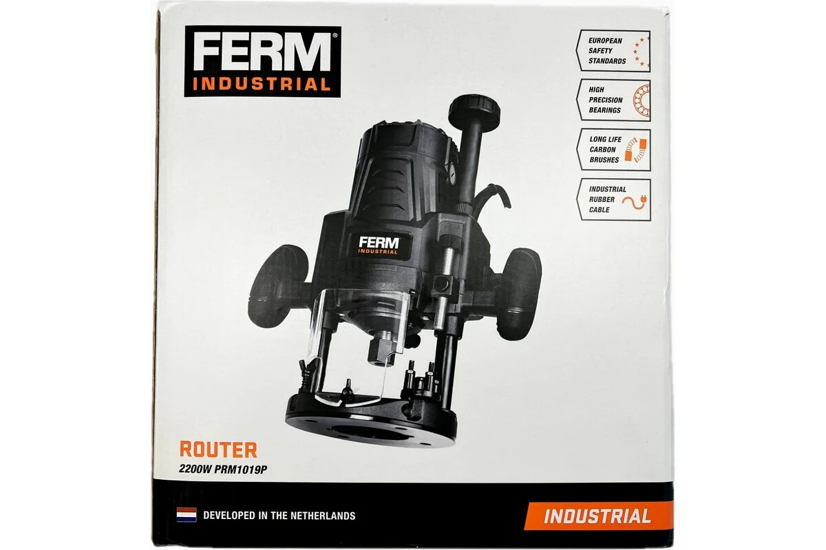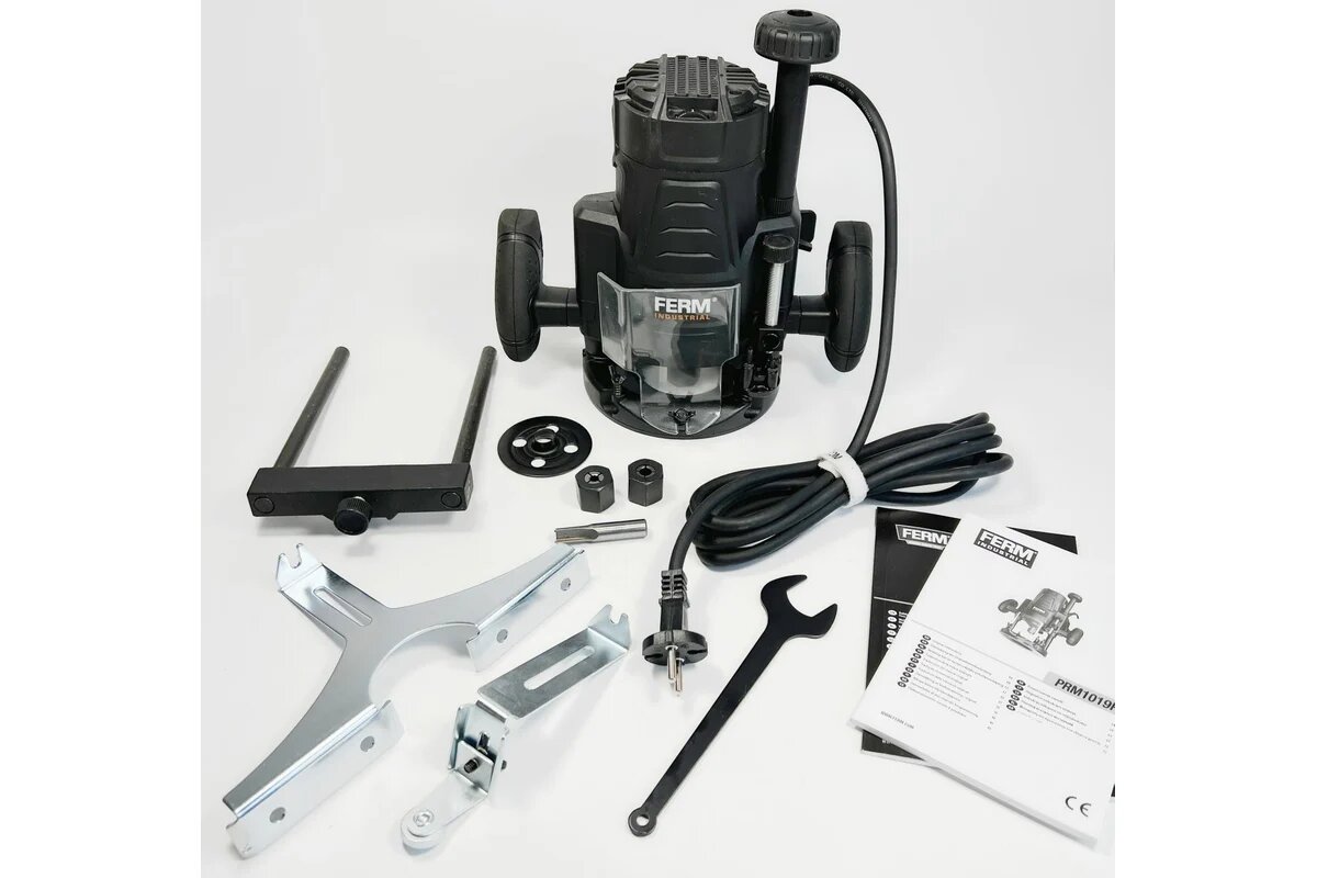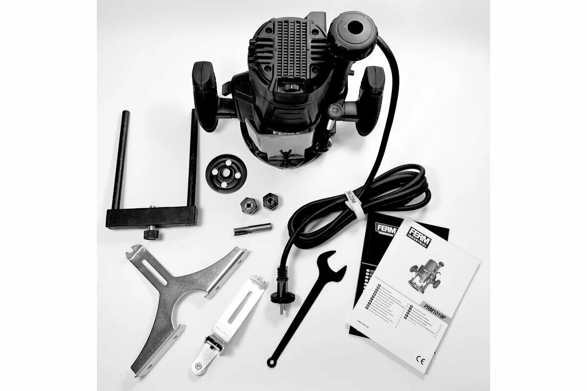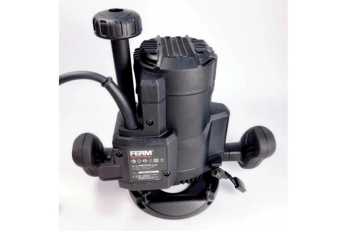 Фрезер FERM PRM1019P оснащен сверхмощной стабилизированной опорной плитой. Сетевой кабель длиной 3 м дает возможность работать на дальнем расстоянии от розетки. Электронная регулировка оборотов помогает выбрать оптимальную скорость для работы в зависимости от вида работы.