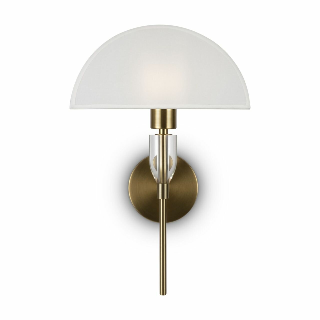 Арматура – металл. Оттенки – хром, латунь. Хлопковый абажур в белом цвете. Прозрачный акриловый декор в основании. Эстетика Баухауса, трендовая форма абажура. Цоколь Е14