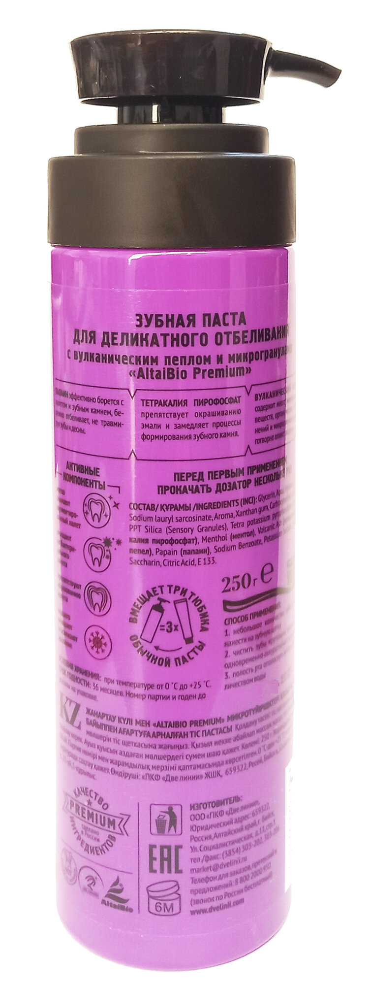 Зубная паста для деликатного отбеливания с вулканическим пеплом и микрогранулами 250 мл AltaiBio (ЭХ99989434826)