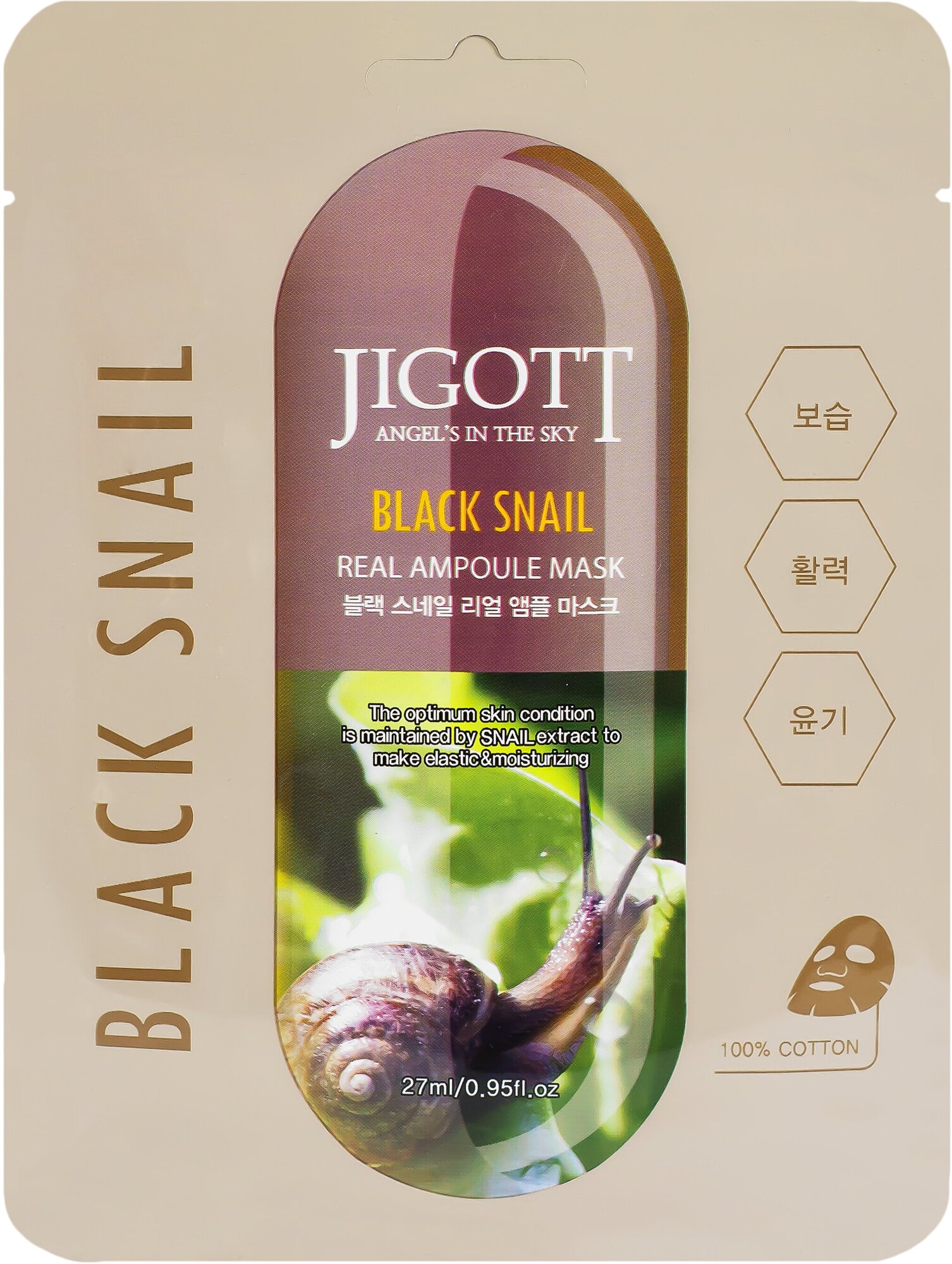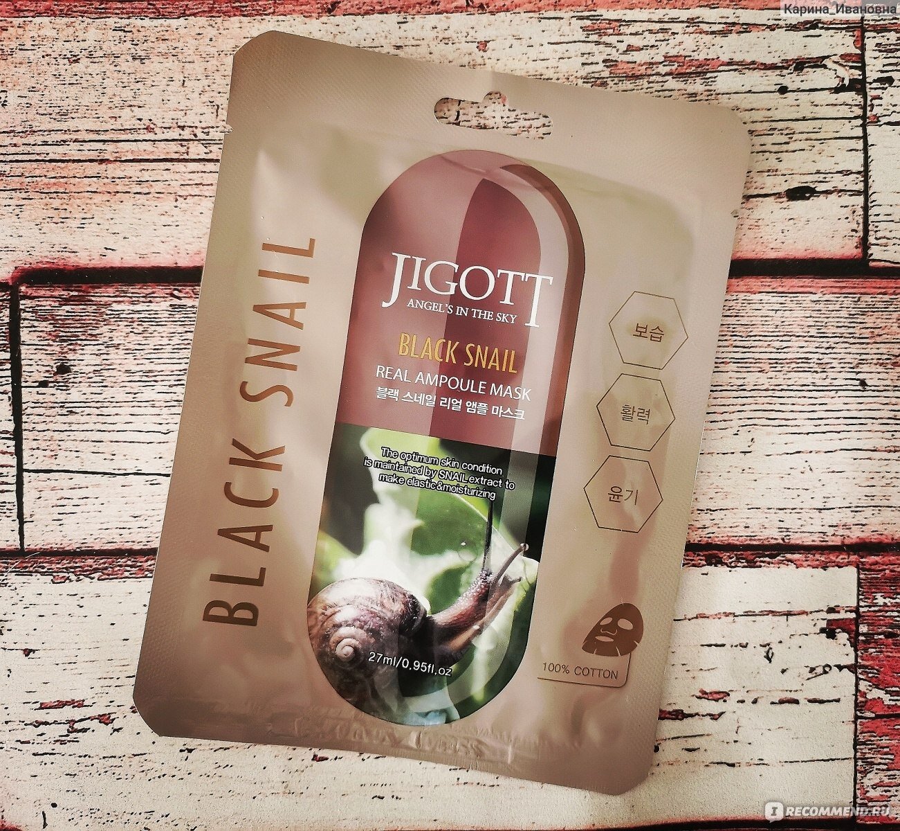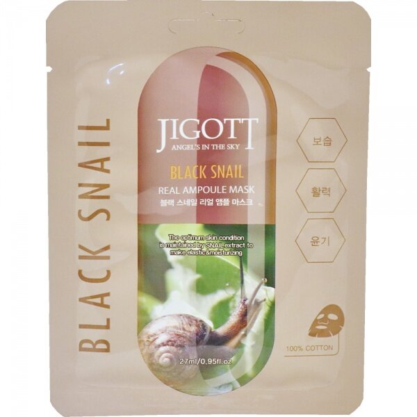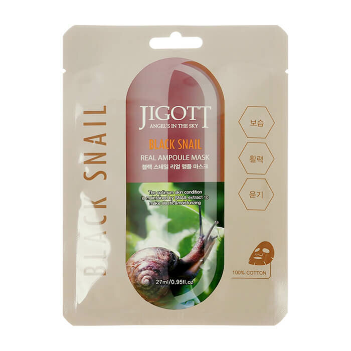 Ухаживающая маска Jigott Black Snail Real Ampoule Mask для лица содержит идеальное средство для тех, кто хочет поддержать красоту и молодость кожи.