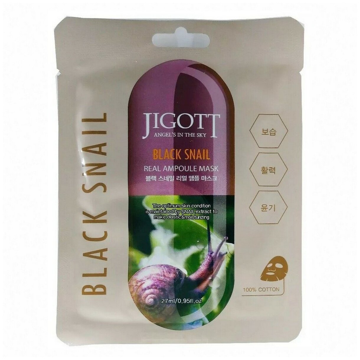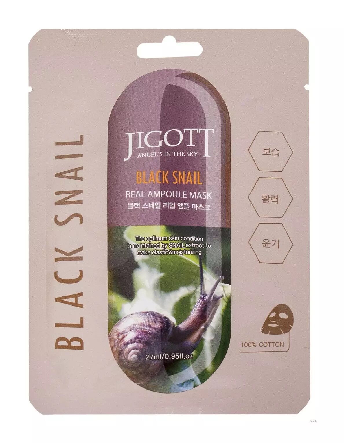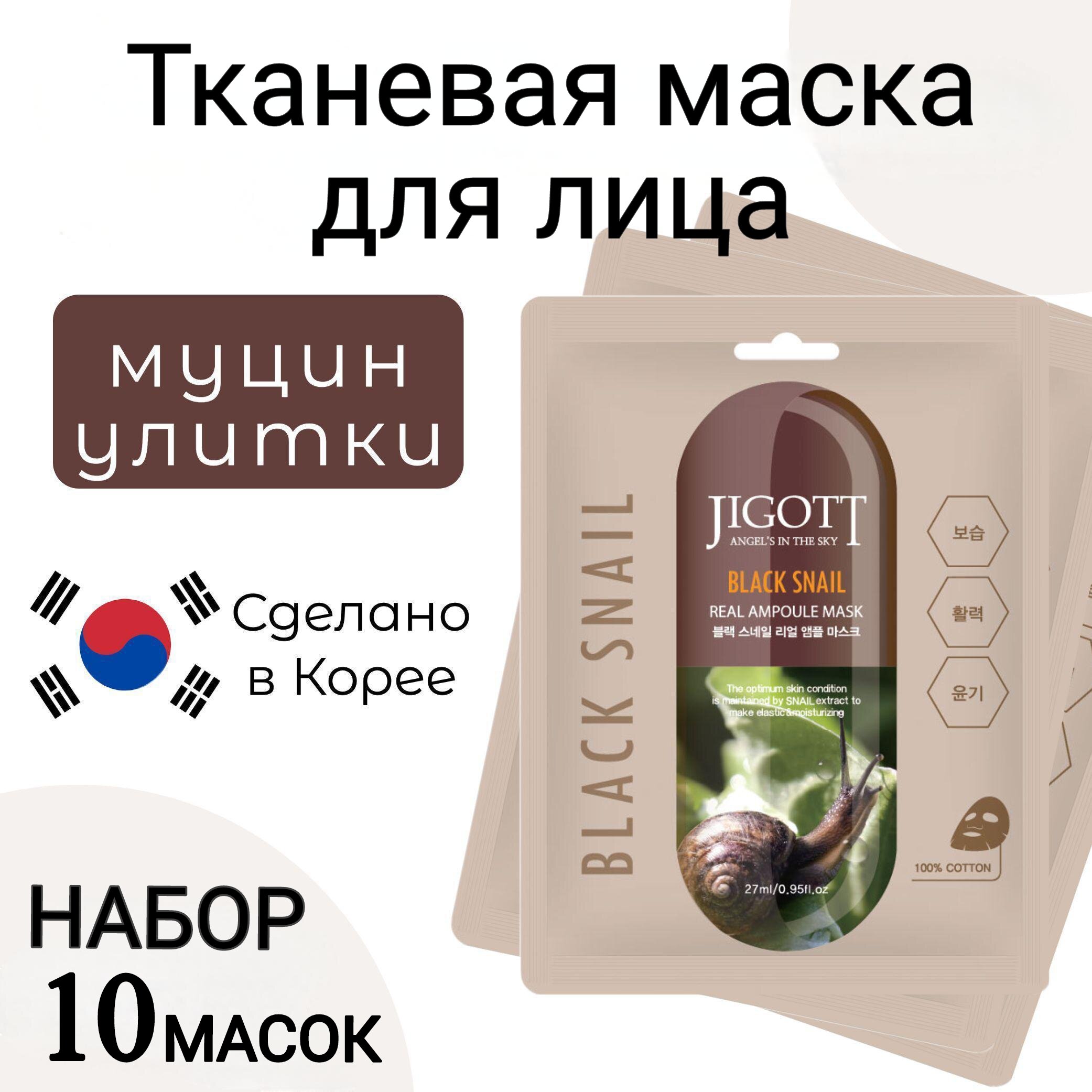 Ухаживающая маска Jigott Black Snail Real Ampoule Mask для лица содержит идеальное средство для тех, кто хочет поддержать красоту и молодость кожи.