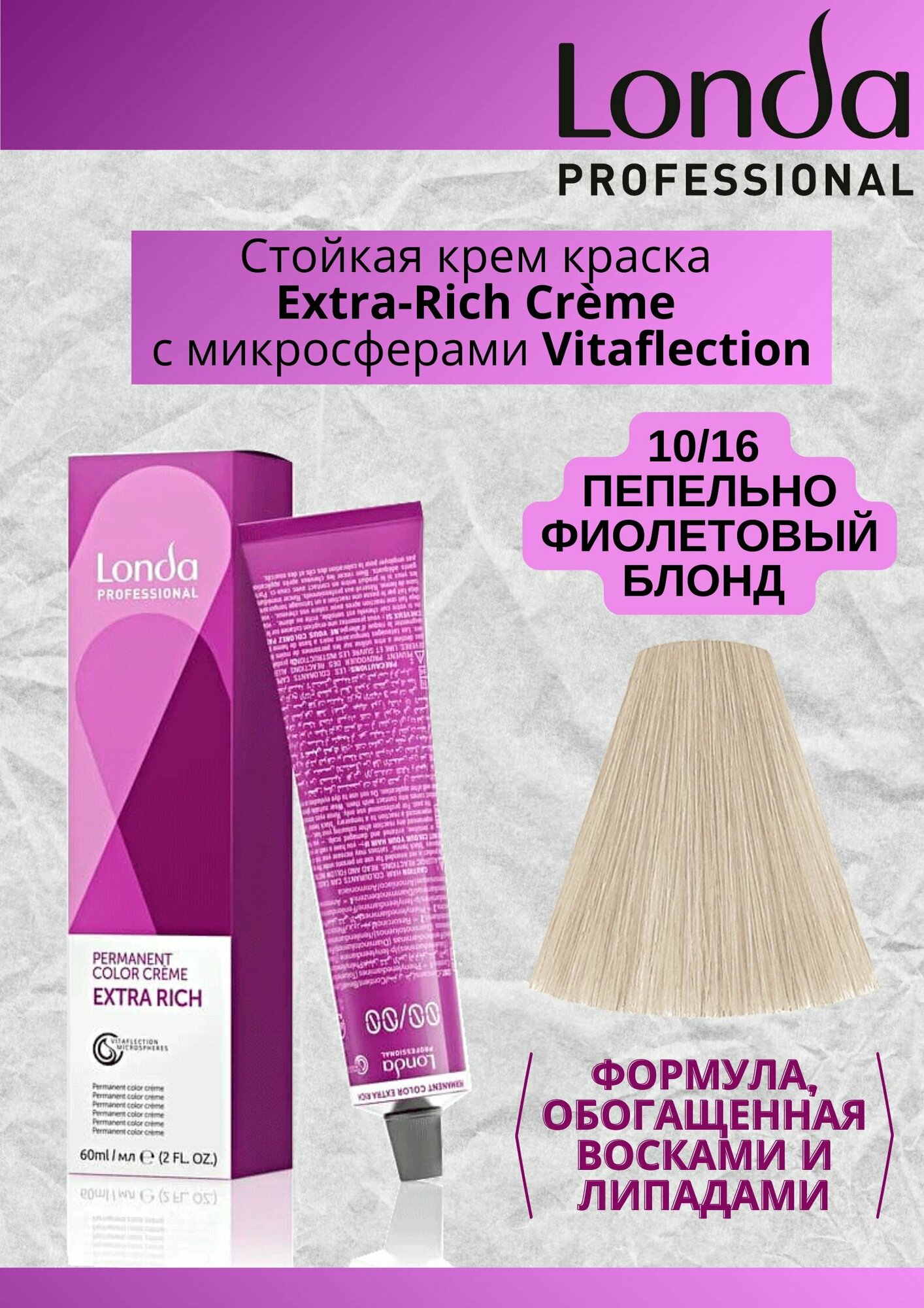 Стойкая крем-краска для волос 10/16 яркий блонд пепельно-фиолетовый 60 мл LONDA PROFESSIONAL (ЭХ99989418760)