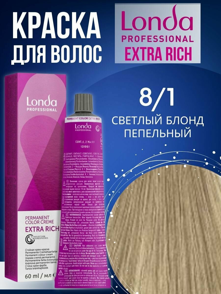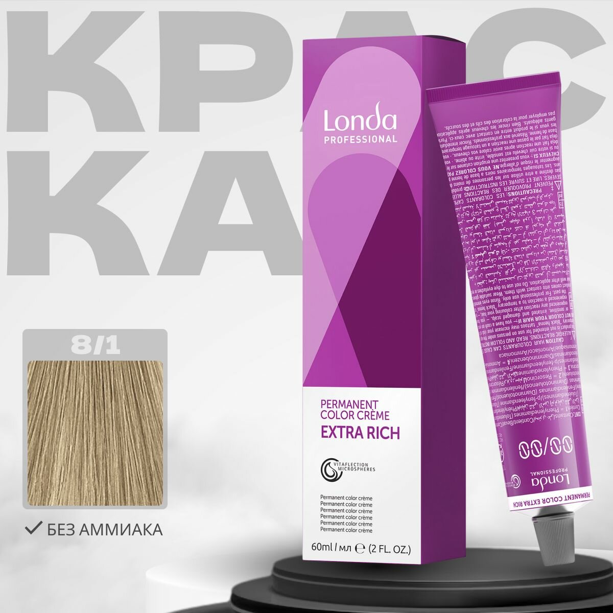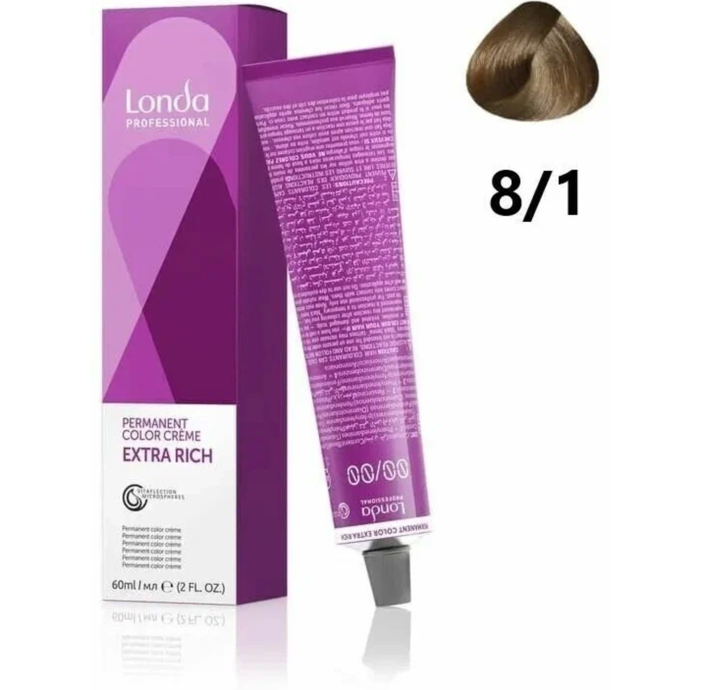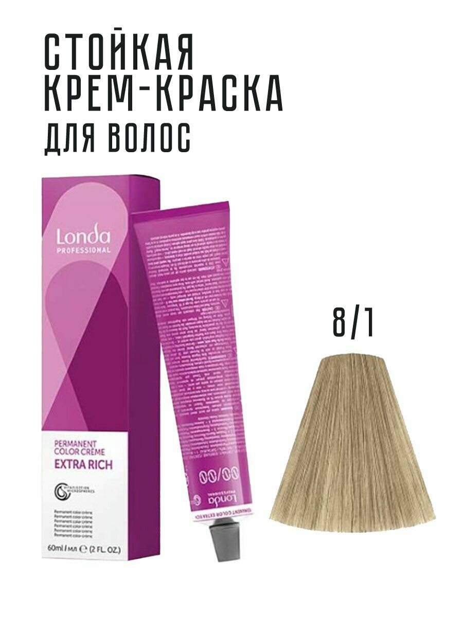Стойкая крем-краска для волос 8/1 светлый блонд пепельный 60 мл LONDA PROFESSIONAL (ЭХ99989418728)