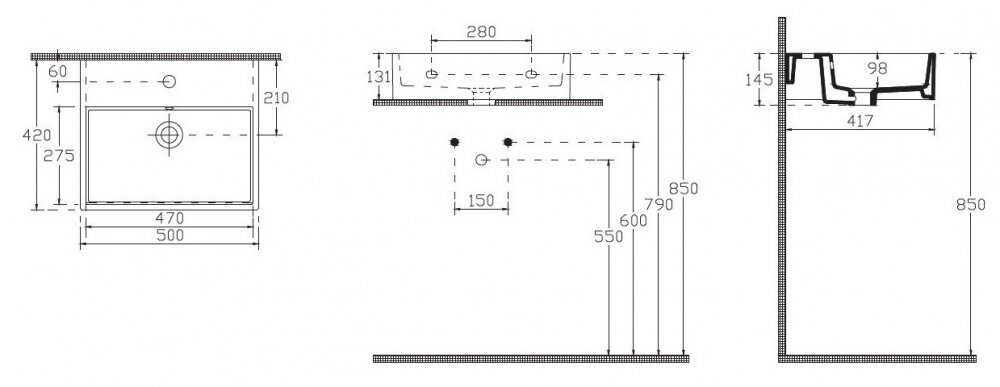 | Отверстия под смеситель | С 1 отверстием под смеситель |