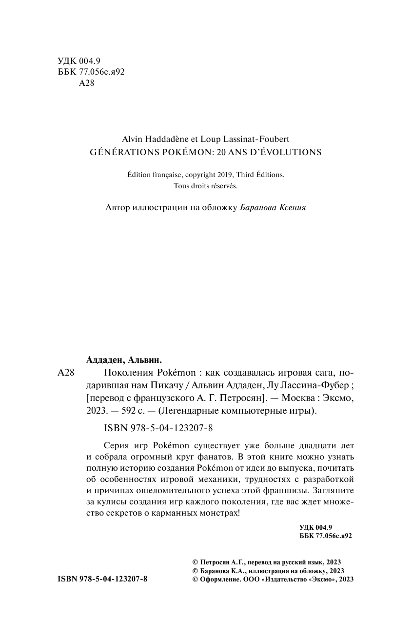 Поколения Pokemon. Как создавалась игровая сага подарившая нам Пикачу (Аддаден, Лассина-Фубер Лу); ООО "Издательство "Эксмо", 2022