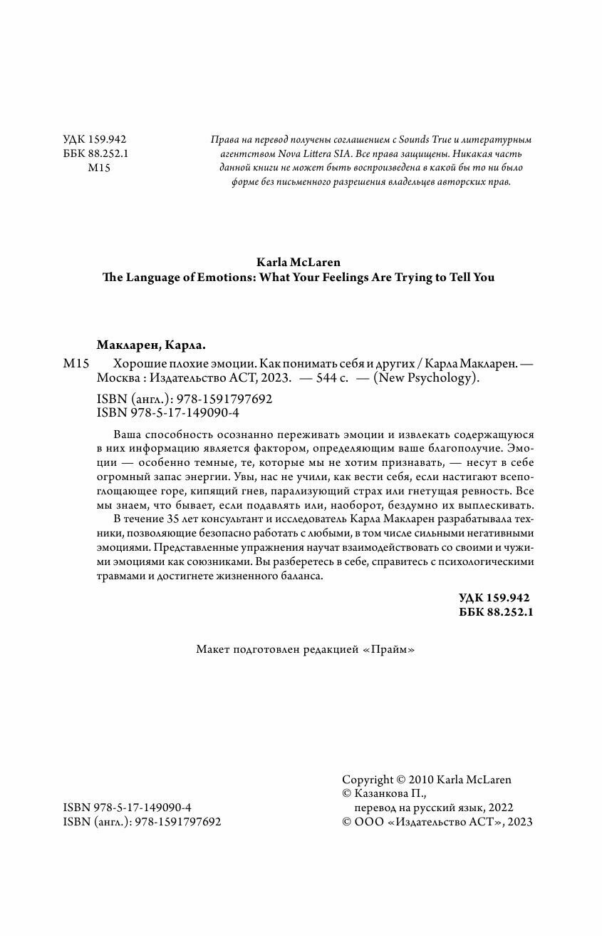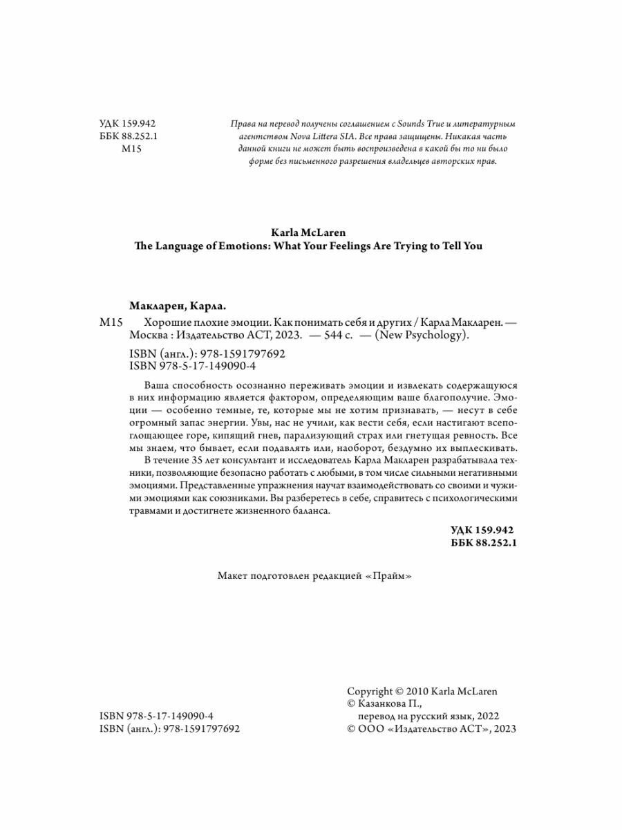 Хорошие плохие эмоции Как понимать себя и других (Карла Макларен); Издательство АСТ, 2010