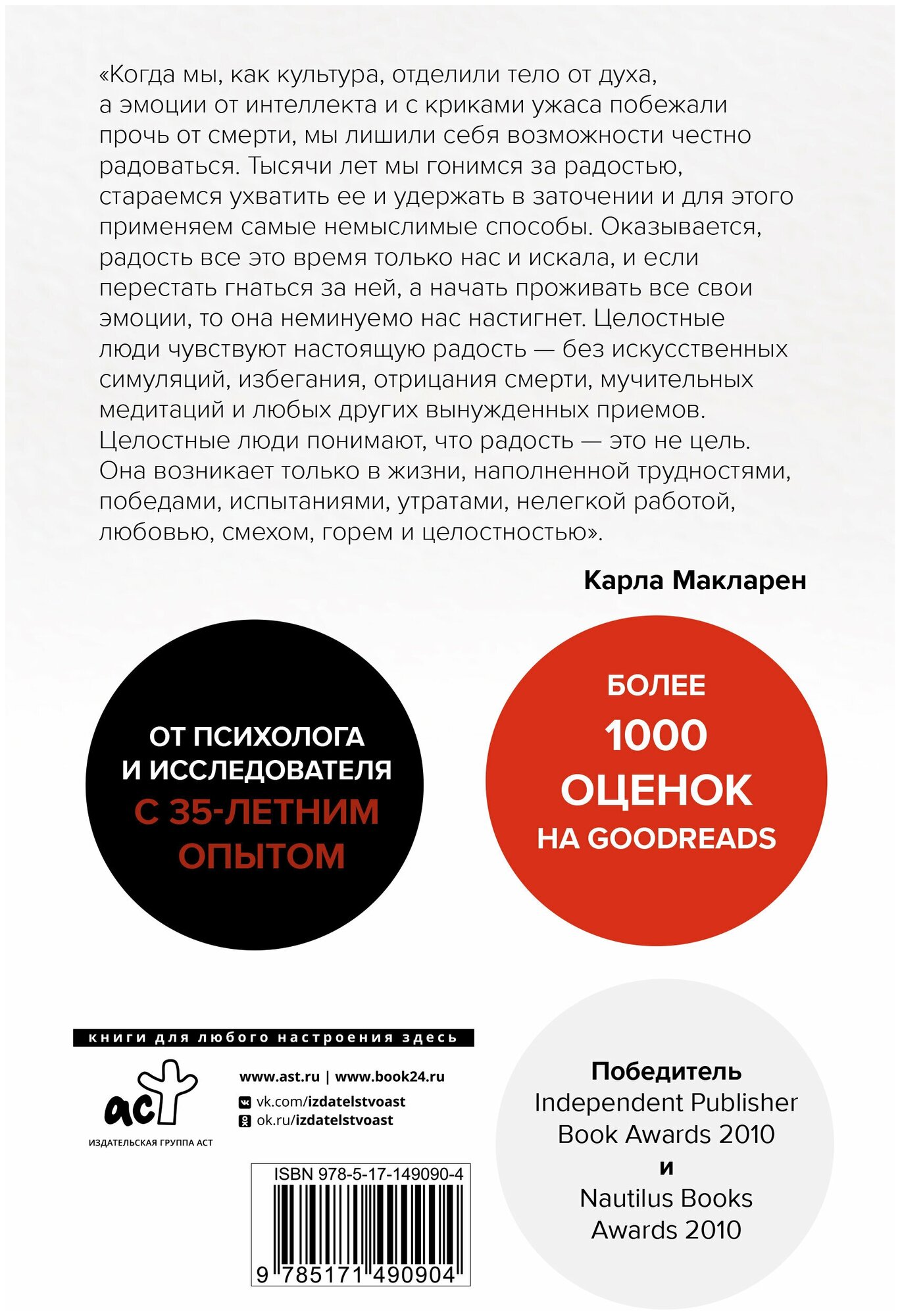 Книга Карлы Макларен развеет миф о "плохих" и "хороших" эмоциях и поможет создать совершенно новые отношения с самим собой. Сбалансируйте свой разум, дух, тело и эмоции и станьте более целостным и устойчивым!