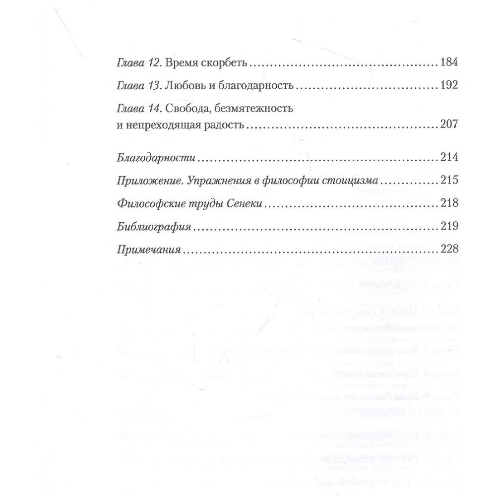 В книге Дэвид Фиделер рассказывает об основных темах работ Луция Аннея Сенеки (например,свободы, гнева, влияния толпы). Каждой из них посвящено по главе, где автор проводит мысли философа по этому поводу и пытается соотнести их с современностью. Хоть идеи по сути просты и логичны, но их осознание и осмысление требует внимания и времени. Но это явно того стоит.