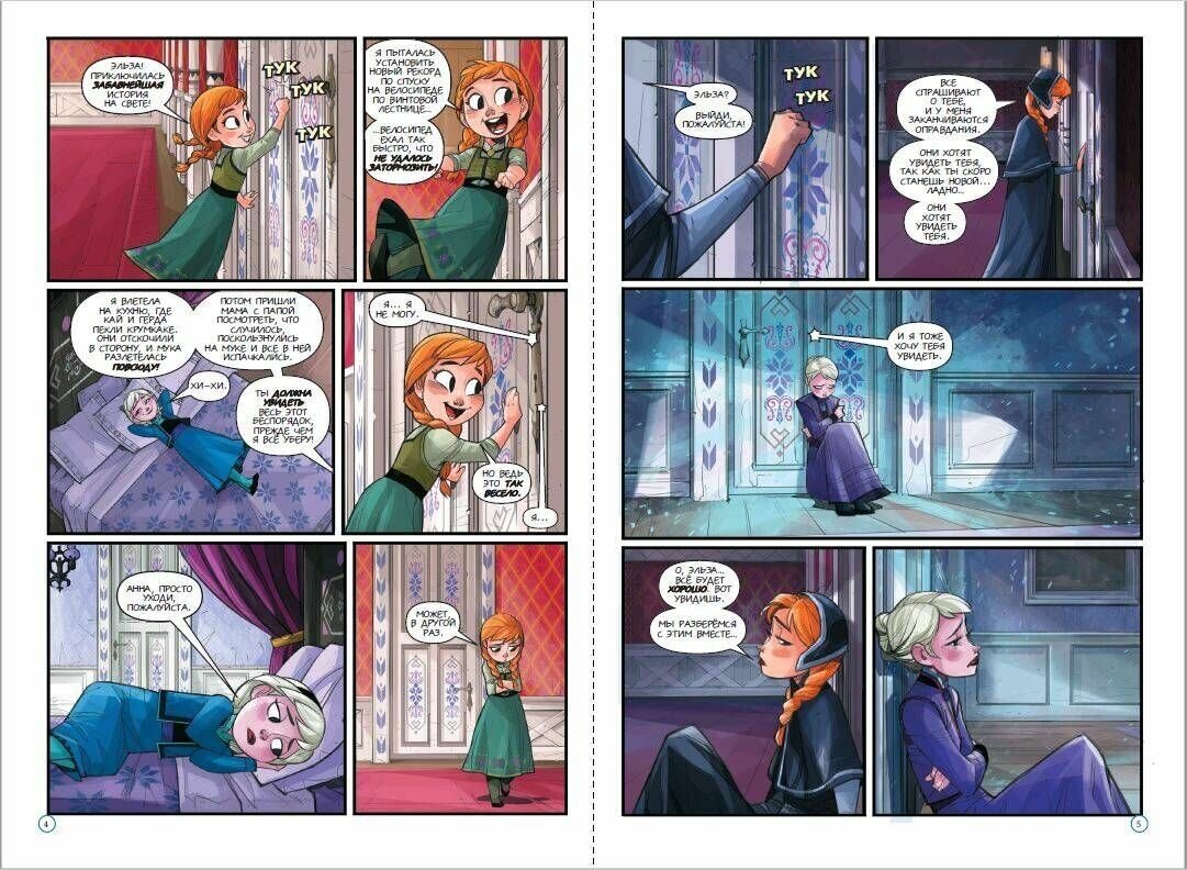 У меня дети очень любят мультфильм Холодное сердце, поэтому я просто не могла пройти мимо этой ниши с предысторией. Этой истории в мультфильмах не было, это не перепечатки картинок с мультфильма, это абсолютно новая история, с которой раньше не был никто не знаком. Детям было очень интересно читать комикс, особенно им понравилось, что картинок очень много. Даже мне, взрослому человеку, было интересно узнать эту предысторию.