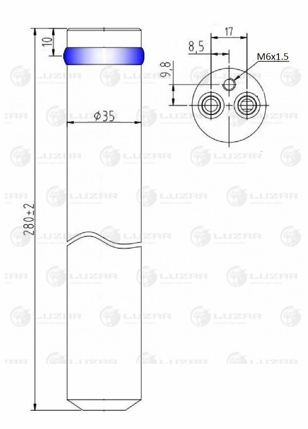 Ресивер-осушитель конденсора для автомобилей Mazda 3 (09-)/ 6 (02-) LUZAR (LCR 2501)