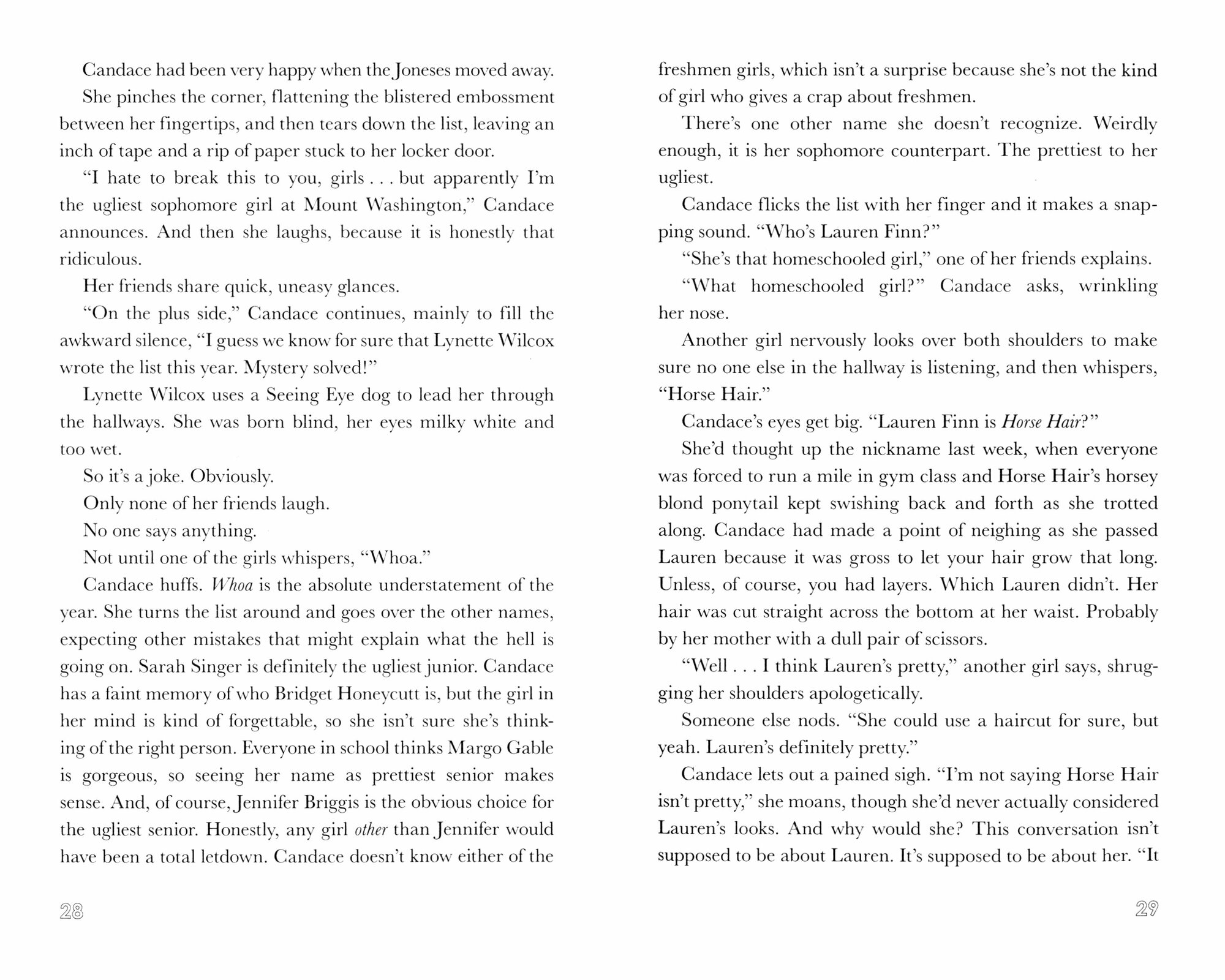 It happens every September- the list is posted all over school. Two girls are picked from each year. One is named the prettiest, one the ugliest.