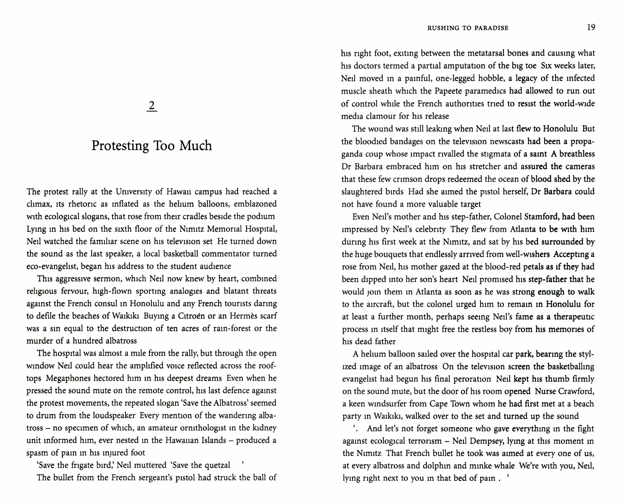 Veteran campaigner Dr Barbara Rafferty’s obsessive crusade to save the albatross on the Pacific atoll of Saint-Esprit gains international support when millions of TV viewers witness the shooting of her young acolyte Neil Dempsey on a foolhardy rescue mission. The coverage that results allows Dr Barbara to turn the deserted island into a sanctuary. It becomes a remote paradise home for Neil, an odd team of eco-enthusiasts and idealists and a growing collection of the world’s endangered species, sent there to find protection from extinction.