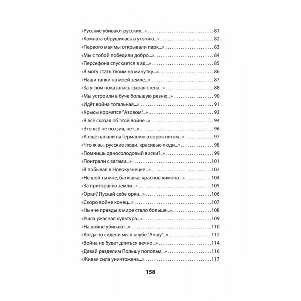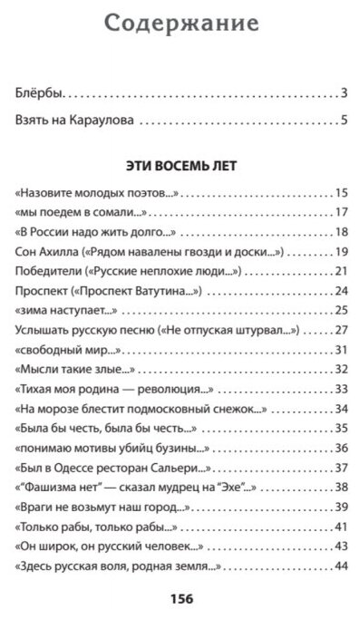 прочитала всю за один вечер. сначала загибала страницы с наиболее понравившимися стихами. когда началась часть, написанная после 22 февраля, бросила загибать - пришлось бы это проделывать с каждой страницей, начала ставить только один или три восклицательных знака. с момента покупки регулярно перечитываю наиболее понравившиеся. Очень была удивлена, что больше всего понравился.... вирлибр Русская песня... я просто уплыла .... отчаянно рекомендую в каждую библиотеку страны!!!