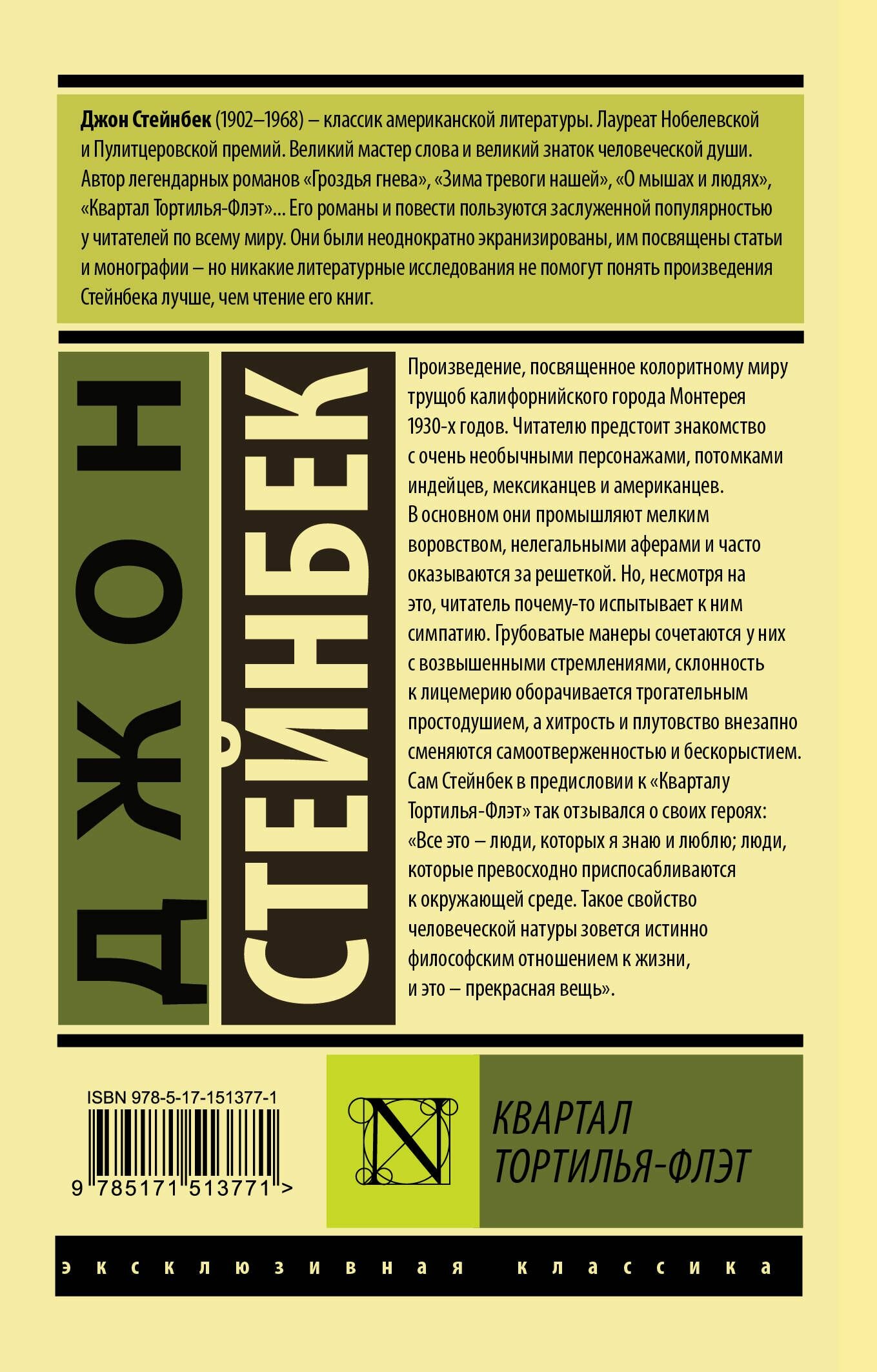 На сегодняшний день товар «Книга: Квартал Тортилья-Флэт (Стейнбек Джон); АСТ, 2022» можно купить с кешбеком в 3 магазинах: Читай-город, Яндекс.Маркет, Буквоед