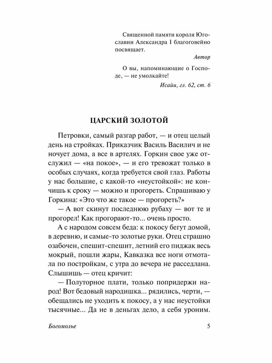 В сборник вошли две повести, объединенные темой православного паломничества. В "Богомолье" детские воспоминания автора о поездке в Троице-Сергиеву Лавру - старорусский монастырь, основанный Сергием Радонежским.