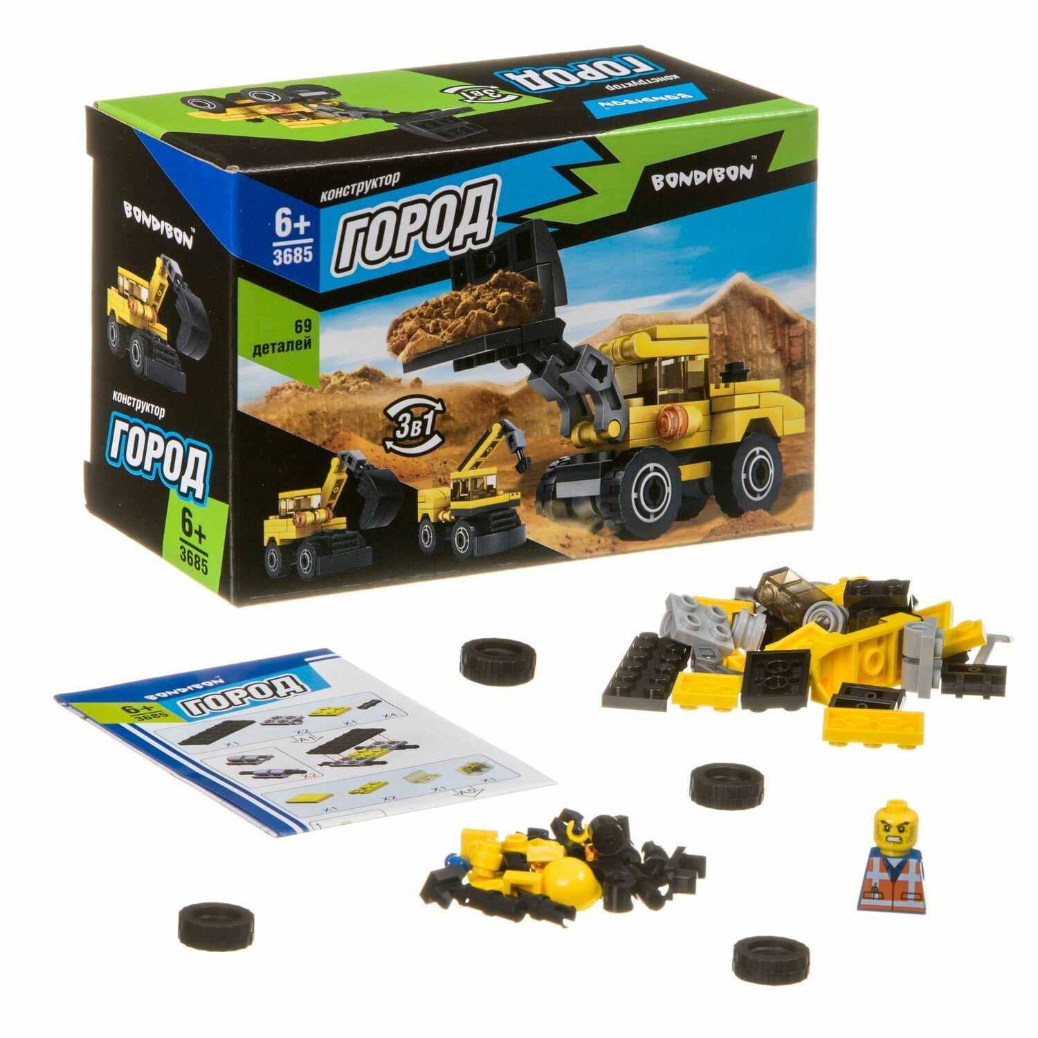 Конструктор 3 в 1 Город. Экскаватор 69 деталей Bondibon