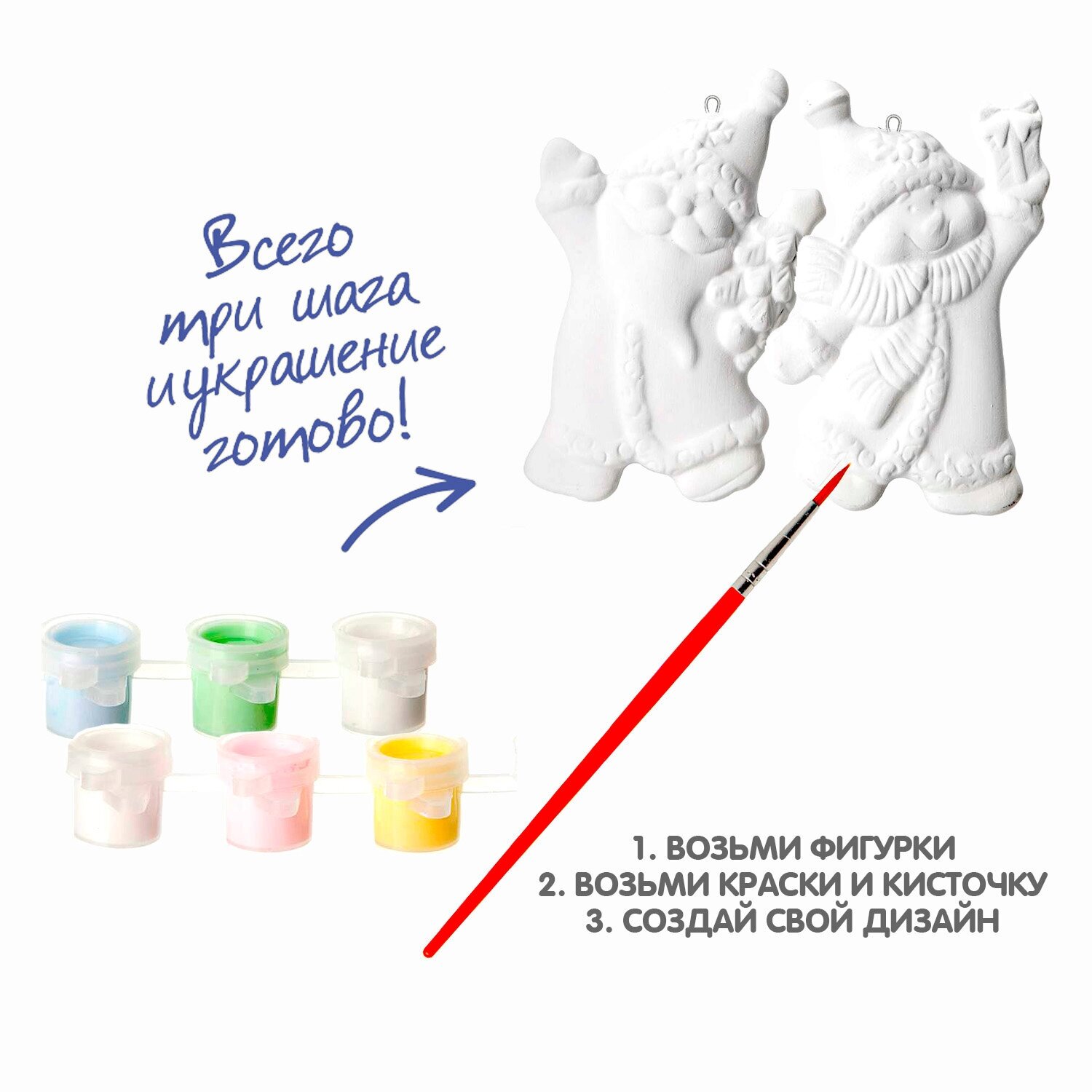 В комплекте есть всё необходимое для росписи керамических фигурок: две фигурки и шесть разноцветных красок с кисточкой.