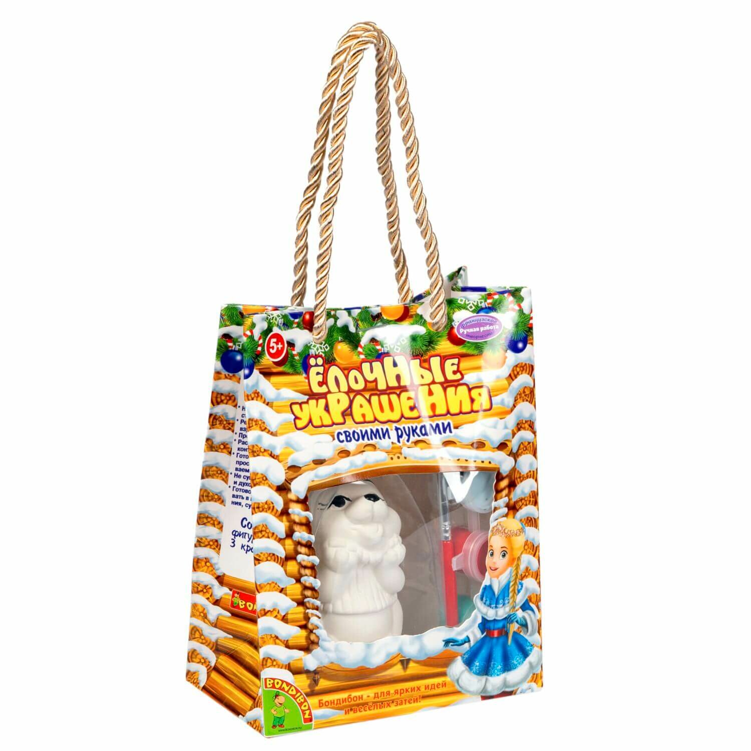 В комплекте есть всё необходимое для росписи по керамике: фигурка зайчика и 3 разноцветные краски с кисточкой. Подарочная упаковка в сумке. Рекомендуемый возраст 5+.