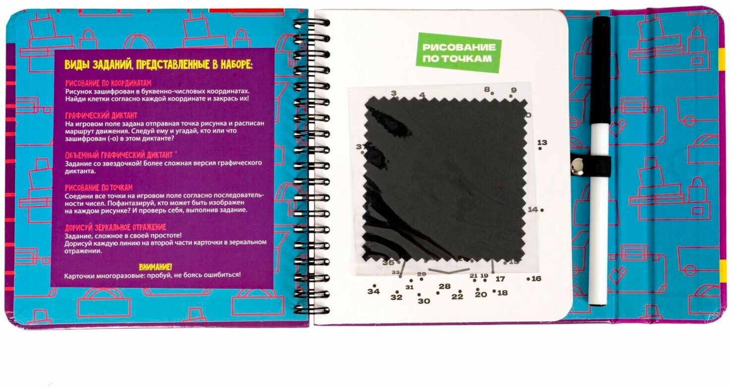 Рисуйте по заданным координатам, по точкам, графические диктанты и их более сложным объемным версиям. В каждом задании скрыт непростой рисунок, который предстоит расшифровать!