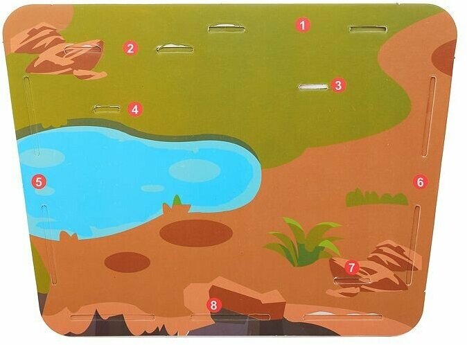 В комплекте: динозавр - 7 магнитных деталей, игровая подставка-площадка - 9 деталей
