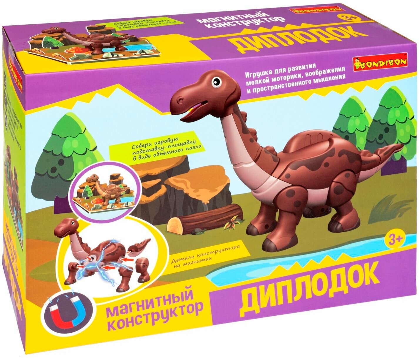 Конструктор магнитный Диплодок с 3D подставкой-пазлом Bondibon
