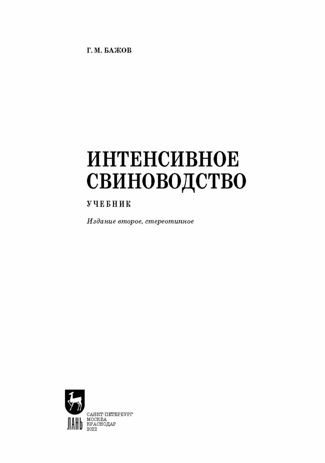 Книга предназначена для студентов аграрных вузов, обучающихся по направлению подготовки «Зоотехния», аспирантов, специалистов свиноводческих комплексов и ферм, слушателей курсов повышения квалификации работников АПК.