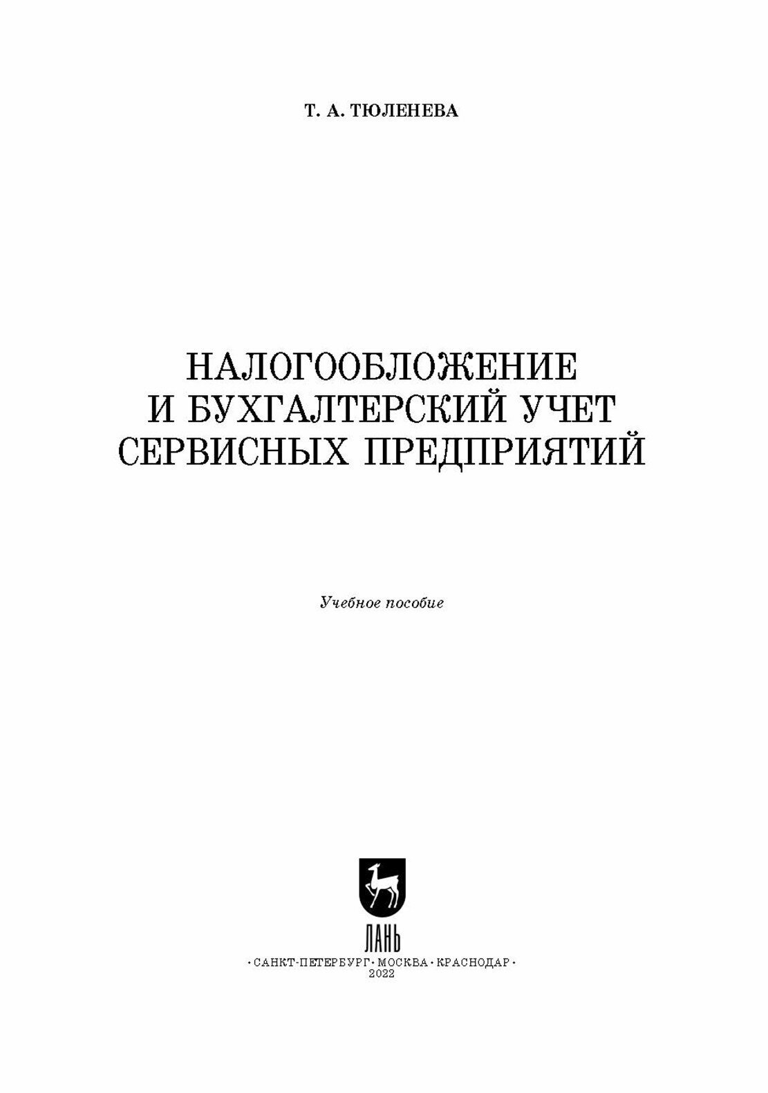 Налогообложение и бухгалтерский учет сервисных предприятий Учебное пособие для вузов (Тюленева Татьяна Александровна); Лань, 2022