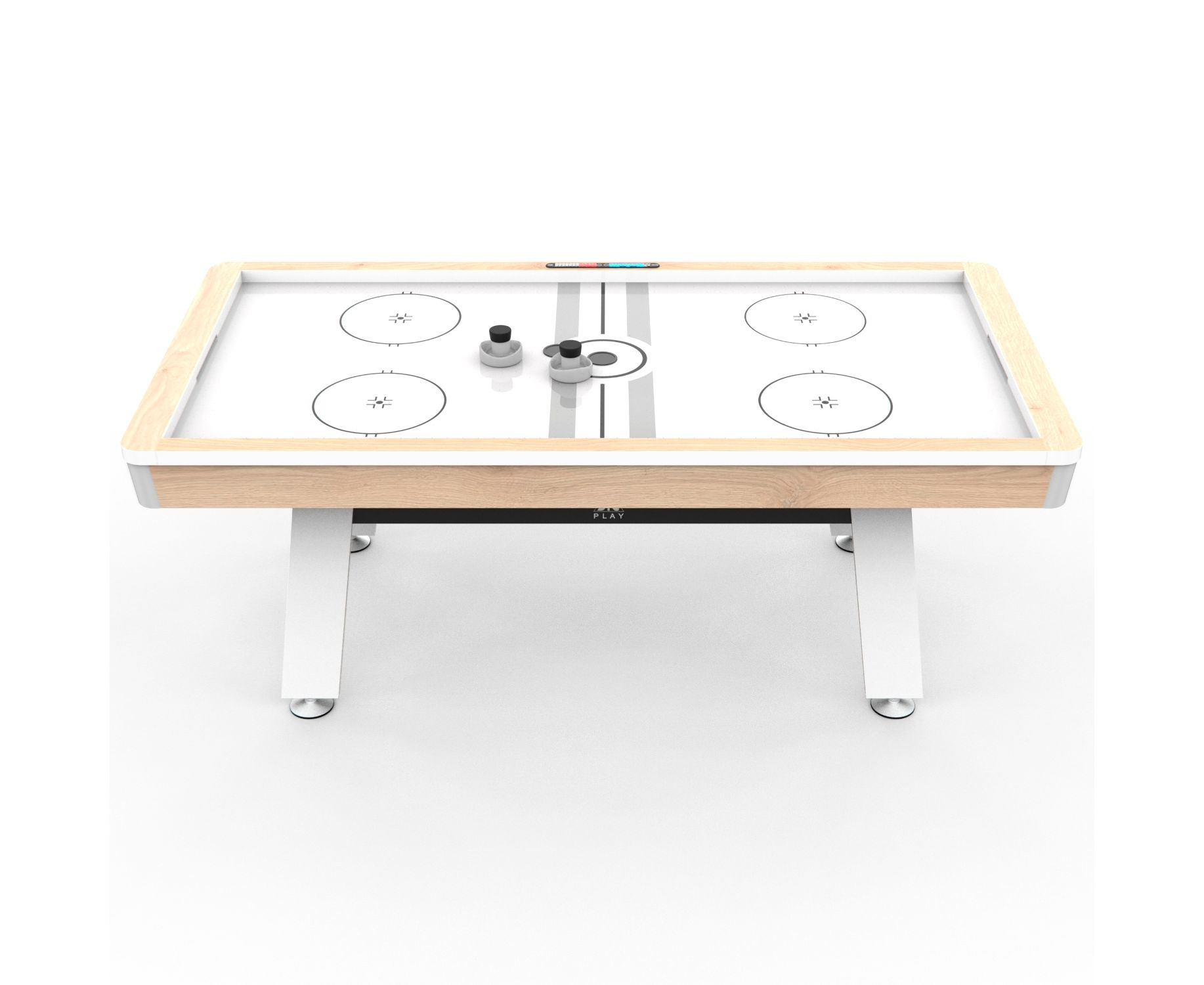 Игровой стол - аэрохоккей DFC AT-300 размером 84 дюйма - лучший выбор для большой семьи или компании. Отделка цвета белёный дуб и дизайн в стиле хай-тек. Имеется электронный счётчик очков с подсветкой.