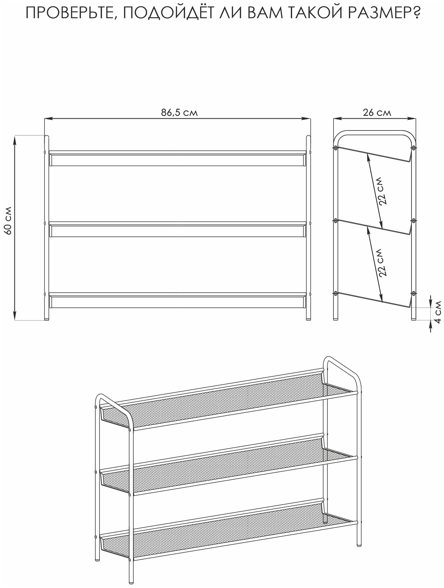 Обувница ЗМИ полка для обуви размер 865х26х60 см цвет графит Hoff Женева