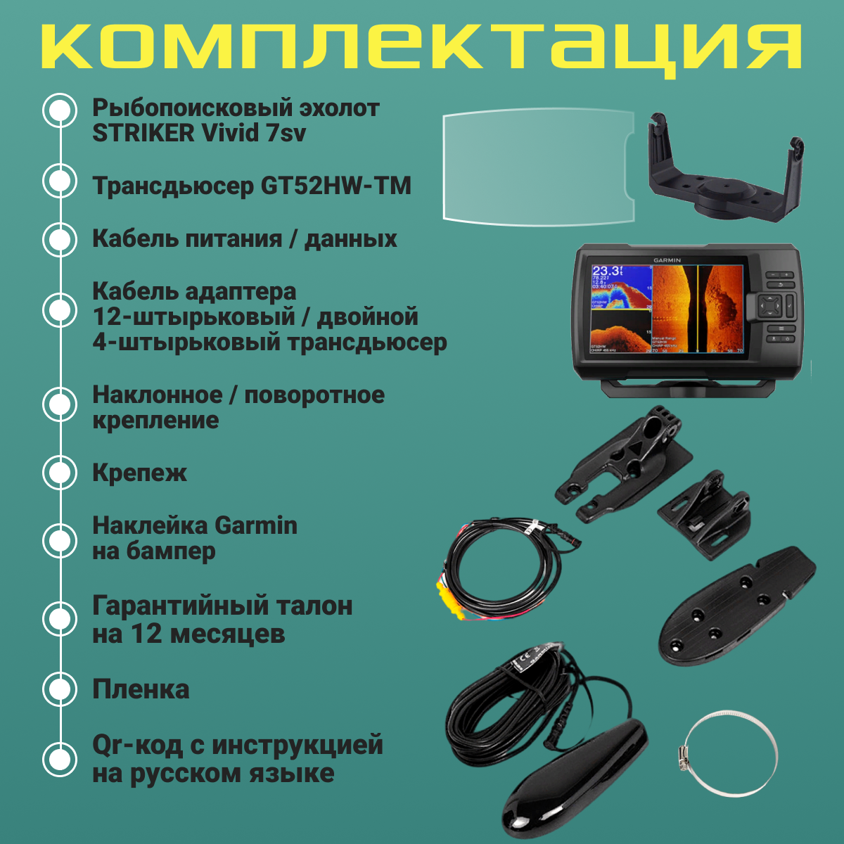 Выбор из 7 новых ярких вариантов цветовой палитры для просмотра рыбы и подводных объектов с максимальным контрастом на 7-дюймовом экране рыбопоискового эхолота Striker Vivid 7sv. В комплект включен трансдьюсер GT52 для доступа к возможностям традиционного сонара CHIRP и сканирующих сонаров CHIRP ClearV? и CHIRP SideV?. Функция отметки маршрутных точек для запоминания рыбных мест, к которым можно легко вернуться. Планирование и создание маршрутов с помощью высокочувствительного GPS-приемника. С помощью STRIKER Vivid 7sv вы можете сохранять до 8 тысяч км2 карт с контурами 30, 48 см. Подключение к приложению ActiveCaptain для обмена маршрутными точками, получения интеллектуальных оповещений (включая оповещения об обновлениях программного обеспечения) и доступа к сообществу Garmin QuickdrawTM. Эхолот STRIKER Vivid 7sv поставляется в комплекте с наклонным/поворотным креплением, а также креплением для установки устройства на транце/троллинговом моторе и кабелем.