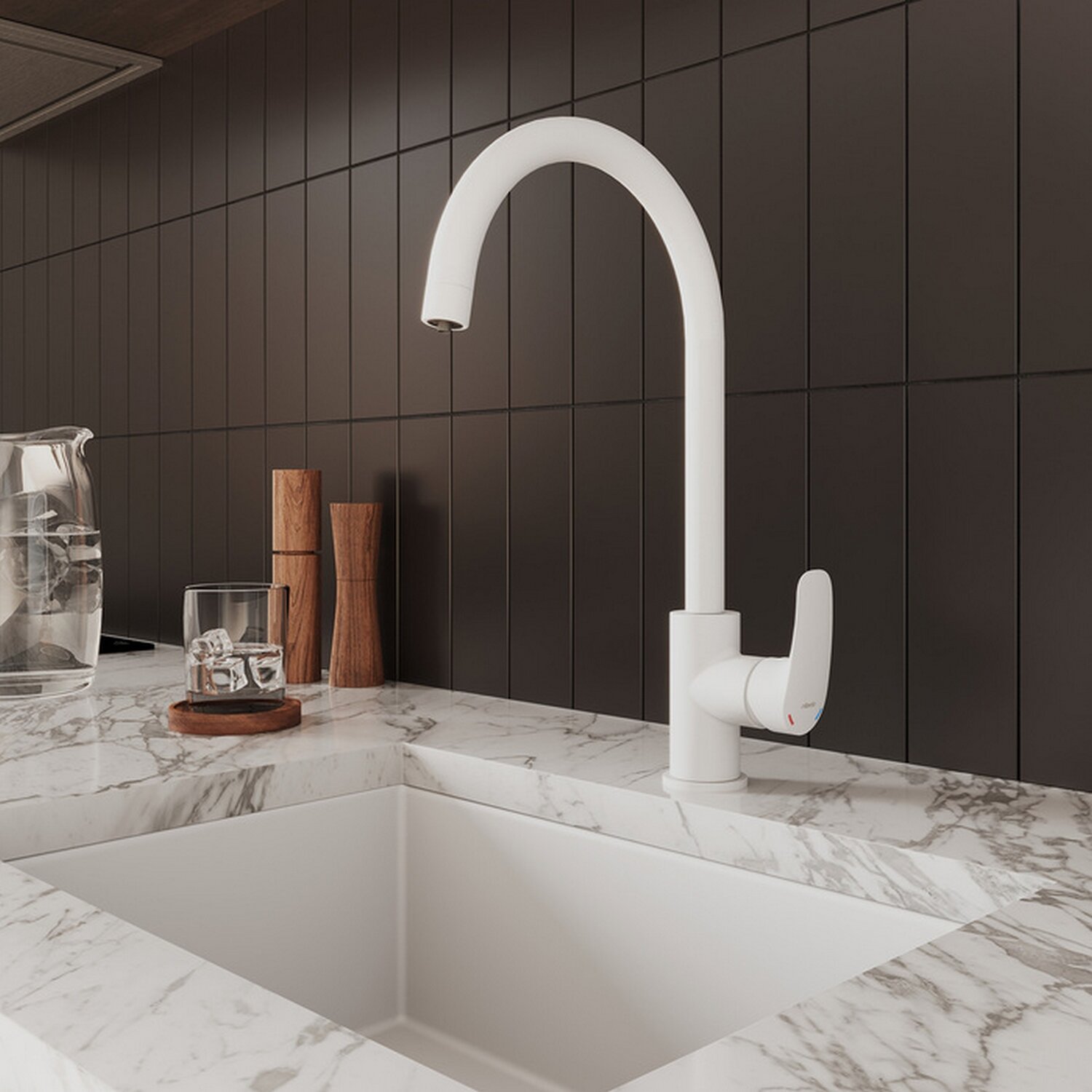 Смеситель для кухни Rora с отдельным каналом для фильтрованной воды отличается универсальным характером: основной акцент в его дизайне приходится на плавные линии корпуса и трендовый белый цвет. К нему можно подключить фильтр любого производителя и наслаждаться чистой водой прямо из смесителя. Переключение между режимами подачи воды осуществляется только одной ручкой. Модель не требует дополнительного отверстия в мойке под фильтр. Гибкая подводка и крепеж в комплекте. • Качественный механизм смешивания воды смесителя Milardo® рассчитан на более чем 70 000 циклов работы – это не менее 15 лет эксплуатации семьей из трех человек. • Электрофоретическое матовое покрытие делает поверхность смесителя устойчивой к условиям высокой влажности – такой смеситель прослужит дольше и сохранит свой первоначальный внешний вид.