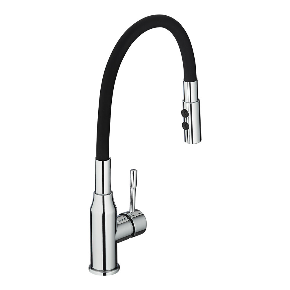 Смеситель Meal с контрастным черным изливом – демократичное решение для современной кухни с высокой функциональностью. Гибкий излив позволяет менять направление потока, расширяя рабочую область смесителя. При подаче горячей воды можно безопасно менять форму излива, не обжигая руки: благодаря внешней оболочке из термостойкого силикона. Усиленная стальная конструкция внутри излива хорошо держит форму даже при сильном напоре воды. Смеситель Meal работает в 2 режимах для более удобного ополаскивания посуды, мытья овощей и фруктов. Переключение между режимами производится кнопками на внешней стороне излива. • Качественный механизм смешивания воды смесителя Milardo® рассчитан на более чем 70 000 циклов работы – это не менее 15 лет эксплуатации семьей из трех человек. • Гладкий излив Milardo® приятен на ощупь, его просто содержать в чистоте благодаря отсутствию стыков и высокой устойчивости материала к грибку. Для ухода за смесителем подойдут обычные моющие средства без использования агрессивных химических средств и средств с абразивами. • Гибкая подводка и крепеж идут в комплекте. • Гарантия на смеситель – 7 лет, на картридж – 3 года.